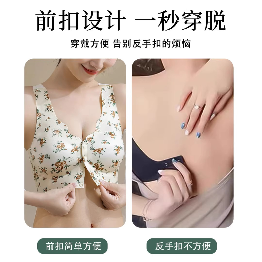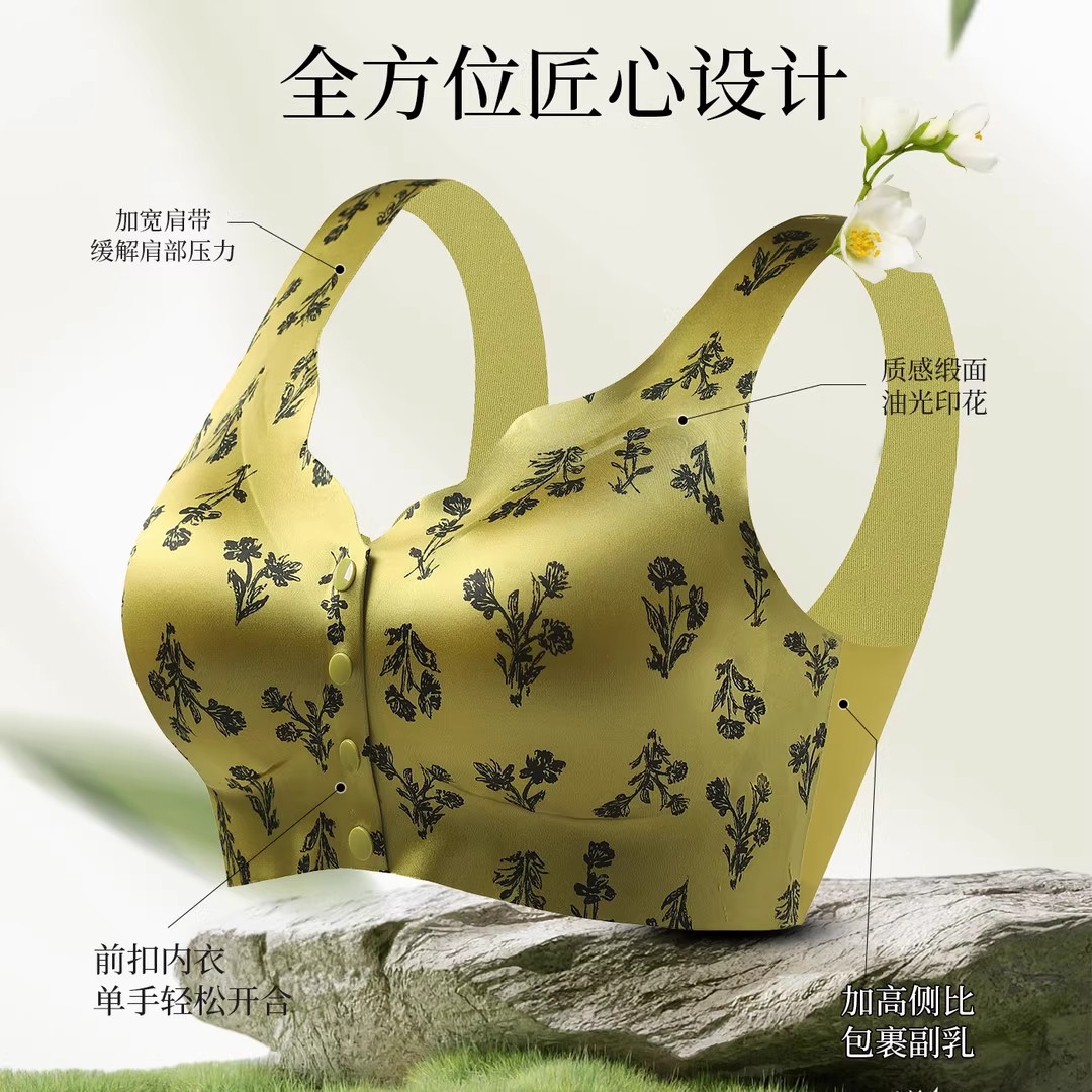 美嘉挺前扣内衣中老年秋冬印花无痕聚拢油光缎面美背文胸琥珀流光