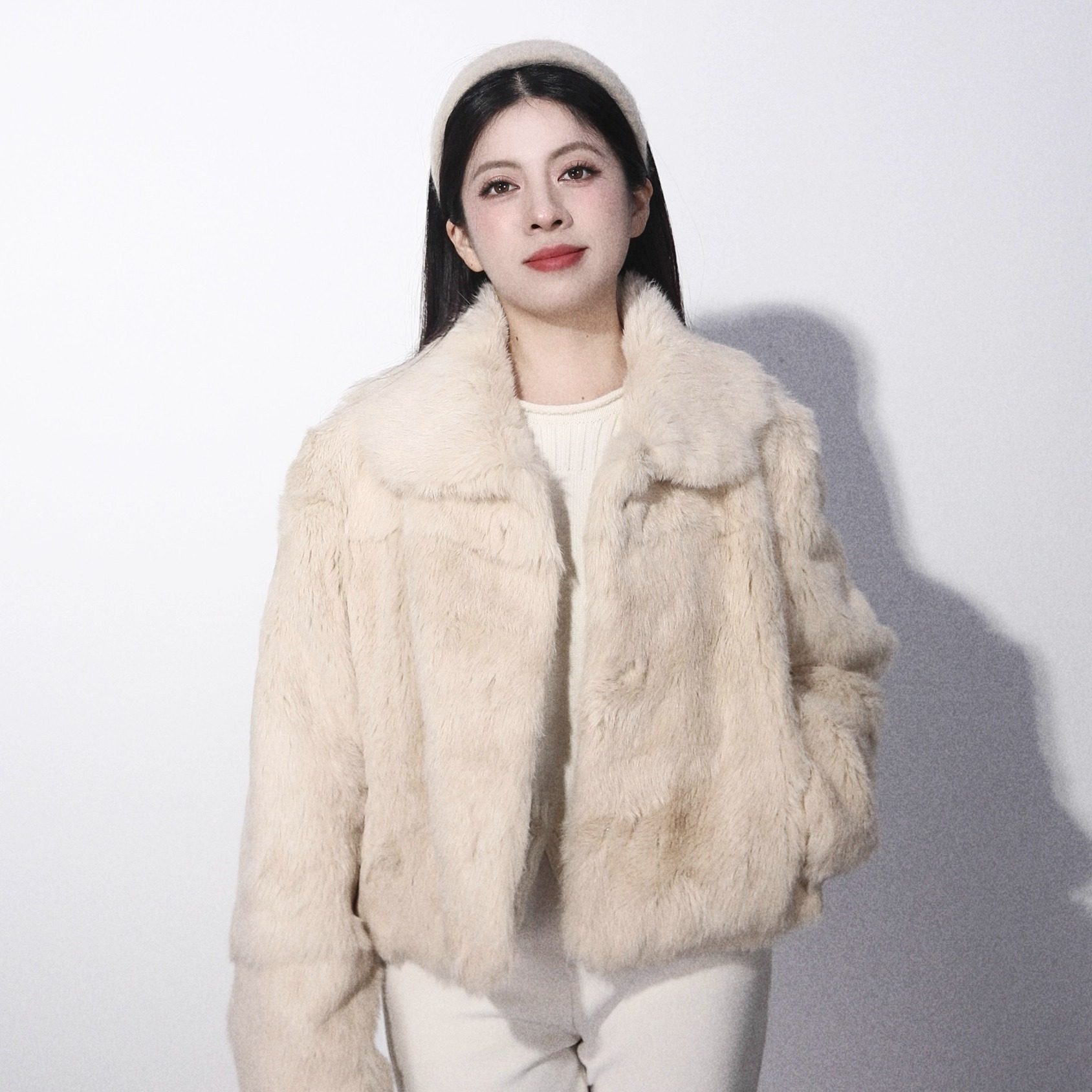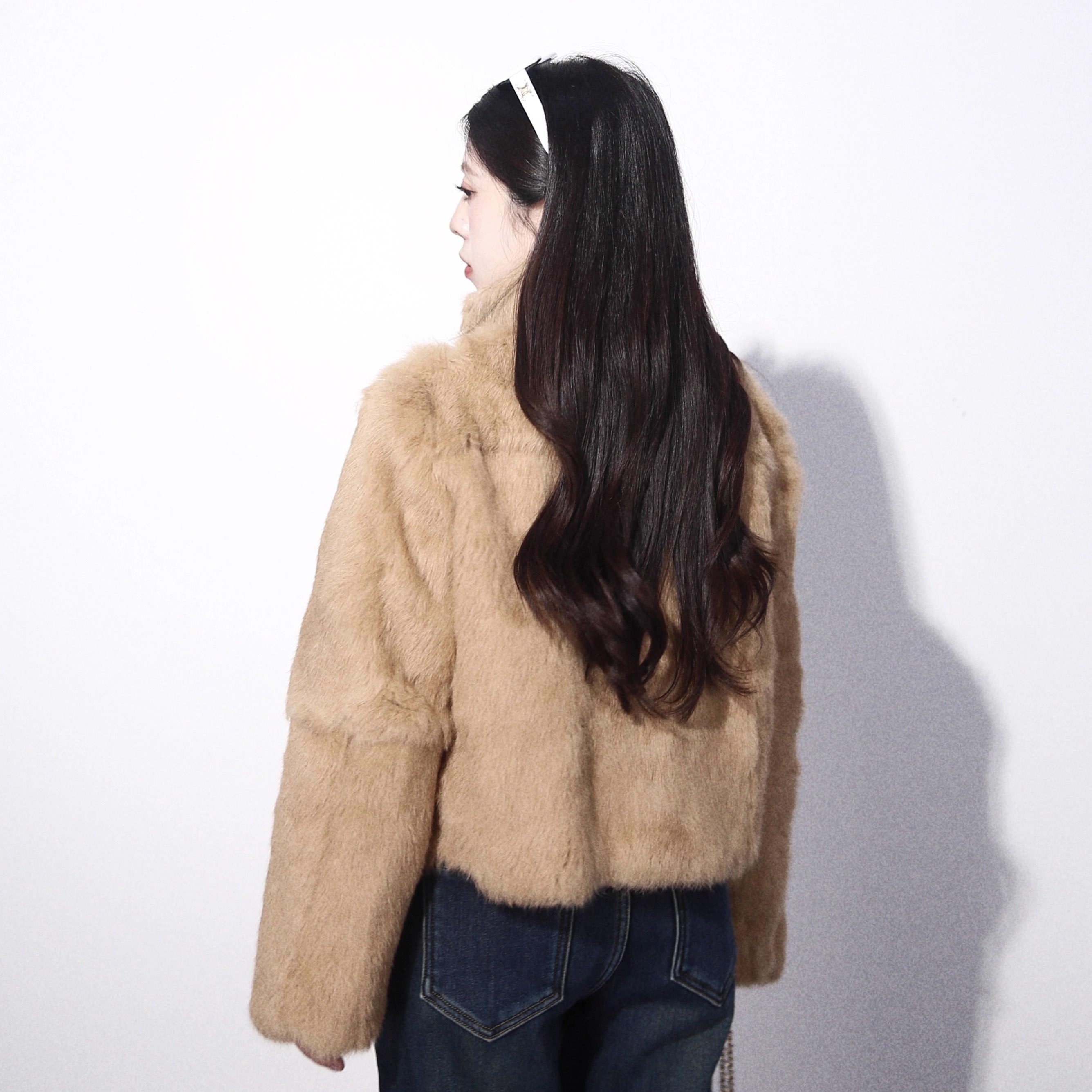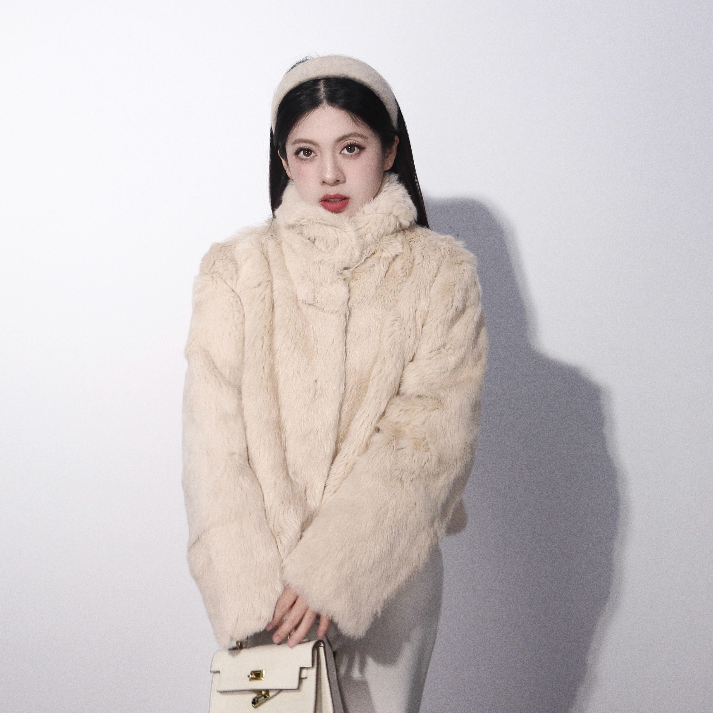 高品质保暖草兔毛皮草小个子短外套高级女 千金兔 大眼LARGE EYE