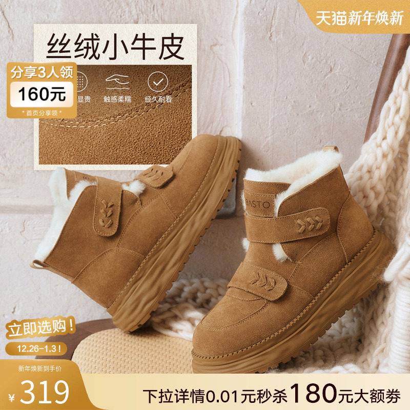 雪地靴加厚棉鞋 骆驼女鞋 加绒保暖时尚 新款 休闲短靴女 2025冬季