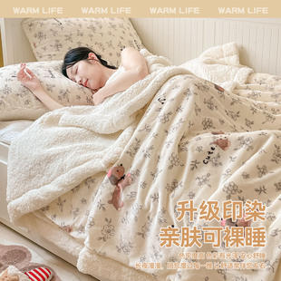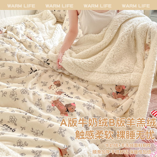 毯子毛毯牛奶绒秋冬午睡空调披肩盖腿沙发盖毯羊羔绒加厚可铺可盖