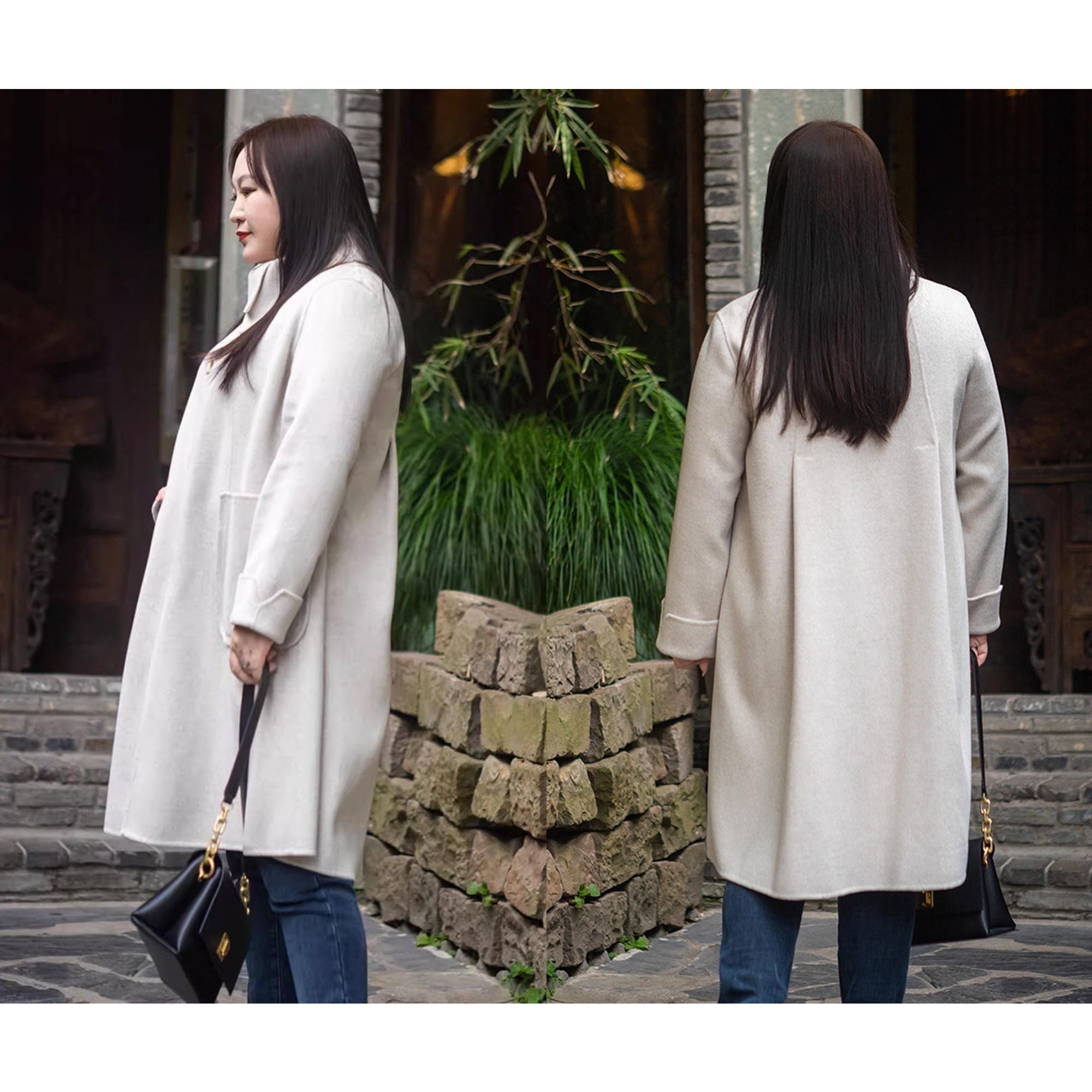 大衣冬2025年新款 优雅气质羊毛双面呢长款 女装 美丽客栈减龄大码