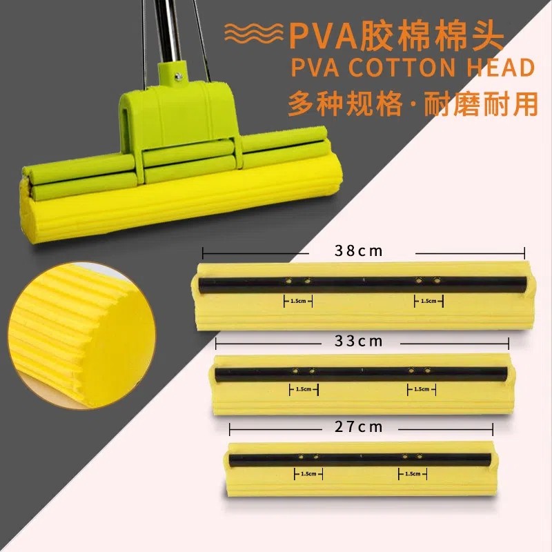 38CM 滚轮拖把头替换头通用家用装 吸水海绵墩布胶K棉头27