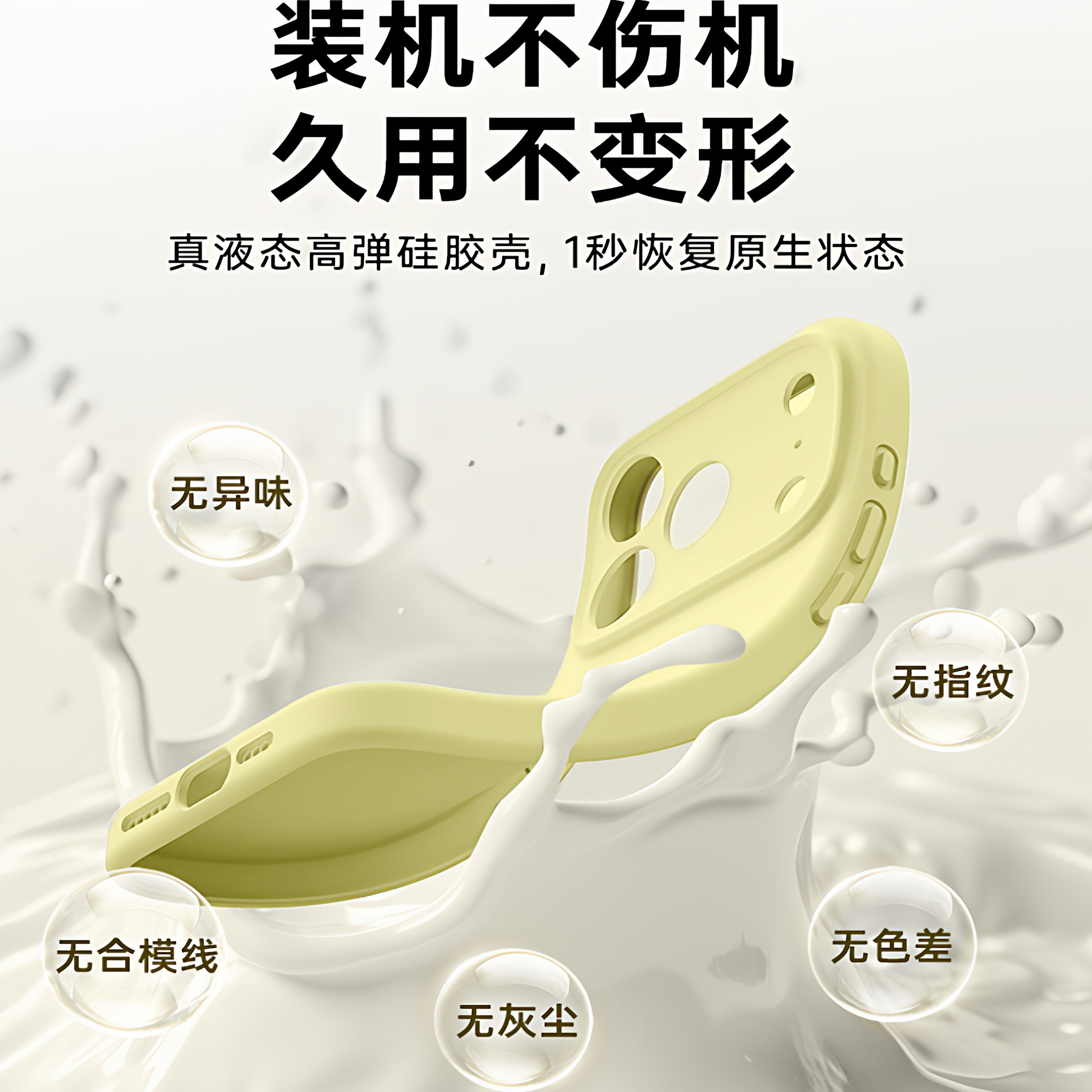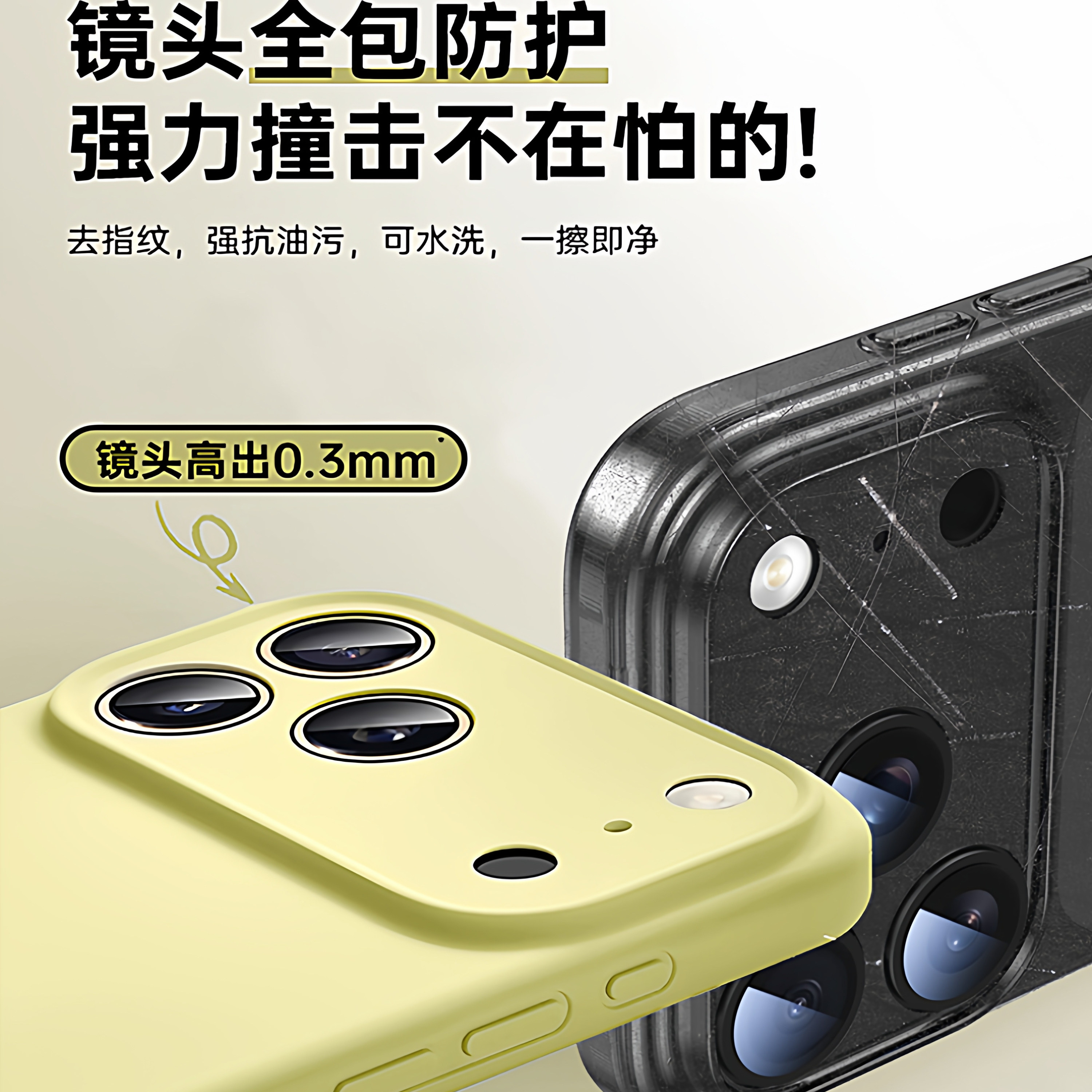 奶油黄精孔液态一体按键适用苹果17手机壳新款 iphone17套苹果17promax全包苹果16防摔苹果15硅胶14pro外壳13