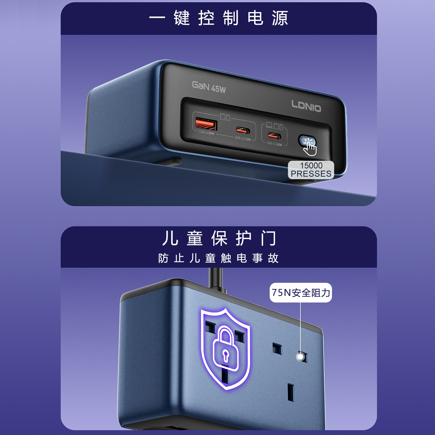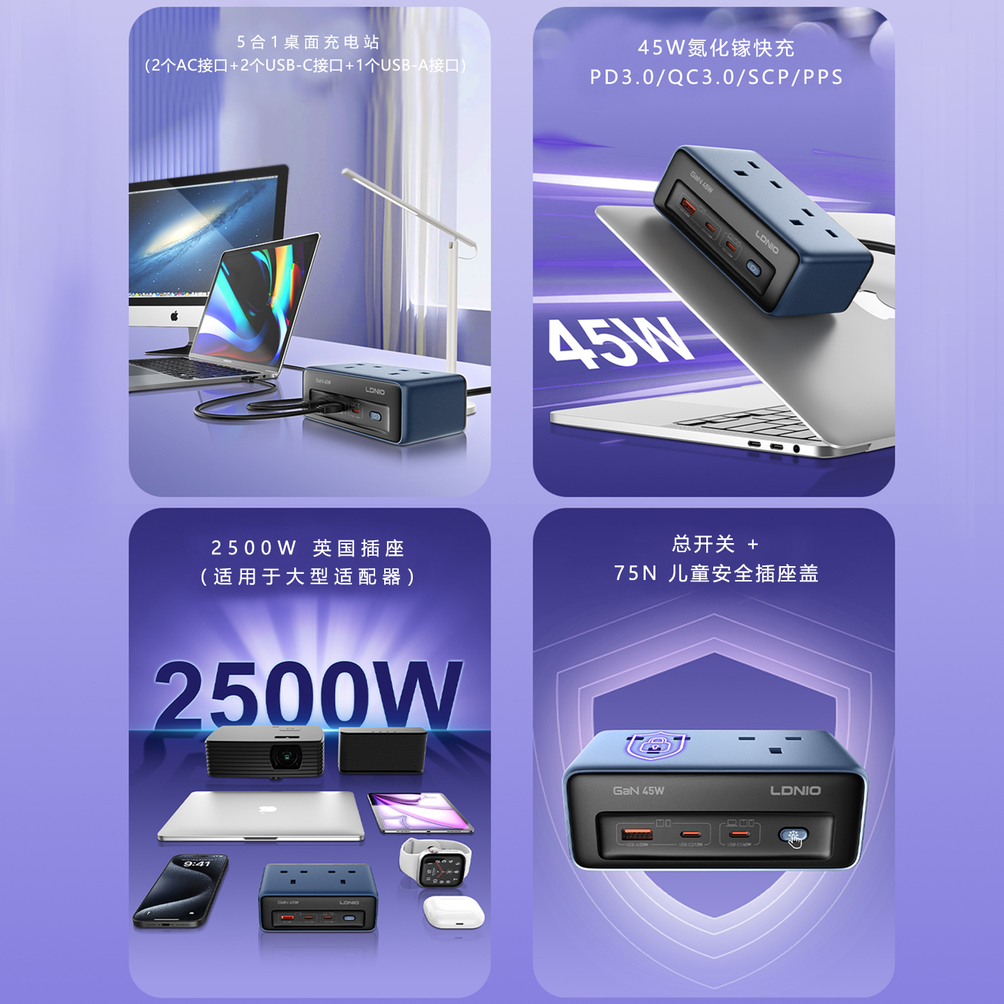 新款 英标插座多功能充电站typec快充排插充电头适用于苹果16华为三星手机平板笔记本 45w氮化镓充电器港版