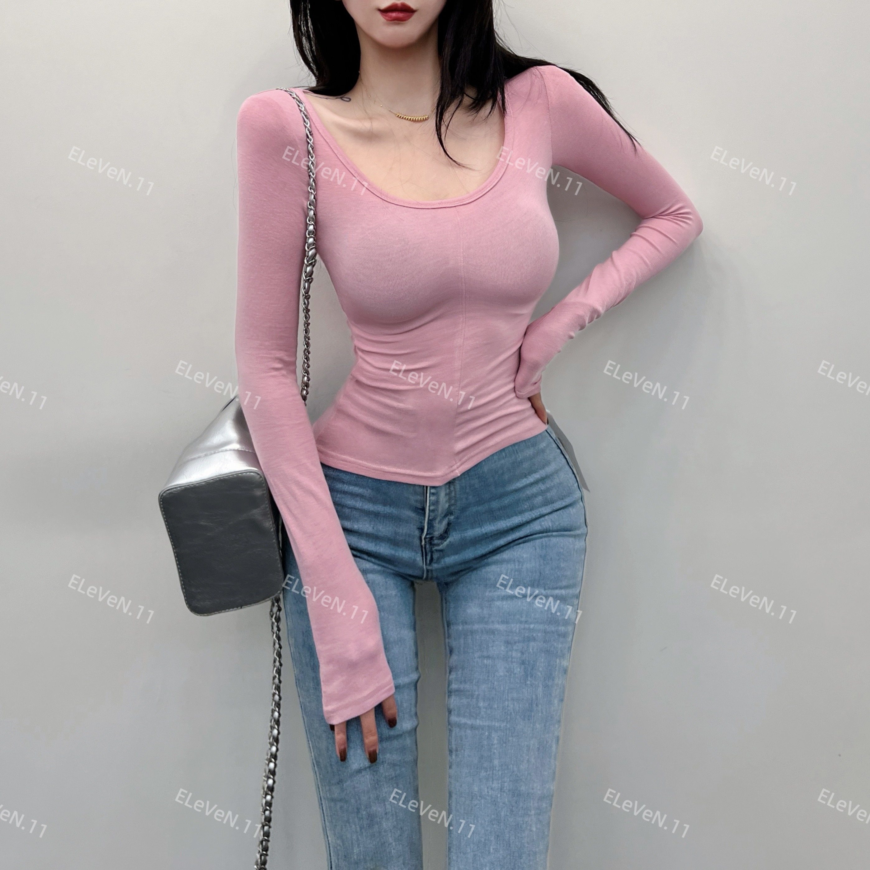 T恤打底衫 领型绝绝 基础百搭性感大U领显身材羊绒长袖 净版 女 秋季
