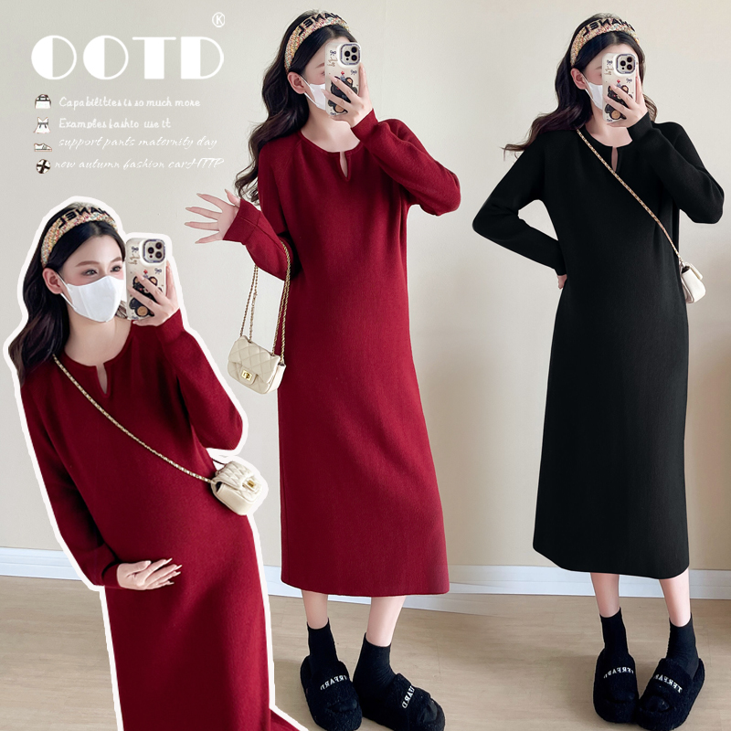 针织连衣裙2025新款 简约长袖 孕妇裙秋冬打底裙子潮妈 秋冬装 孕妇装