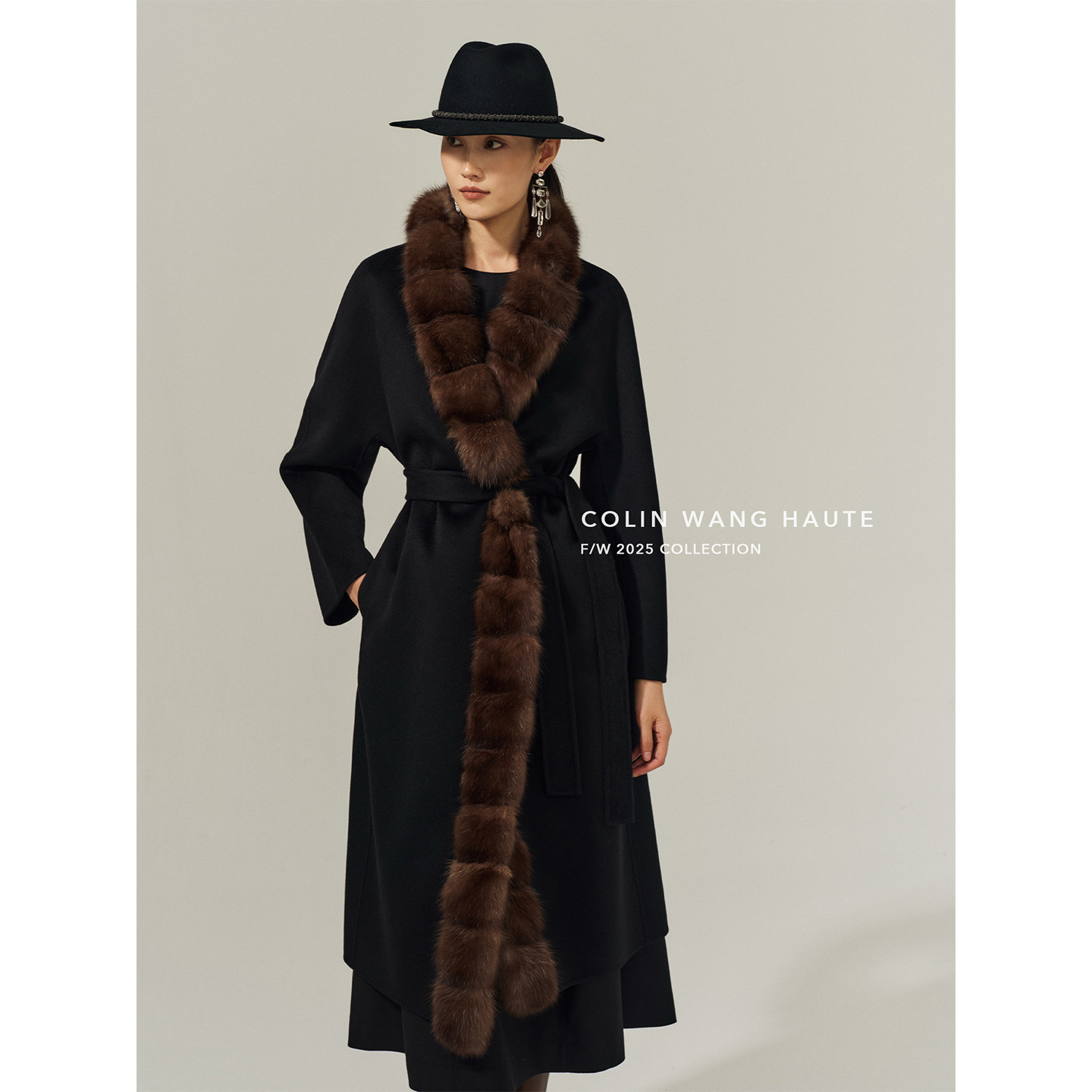 气质羚羊绒加厚大衣 QY2025秋冬韩系高级感中长款 高档礼盒装