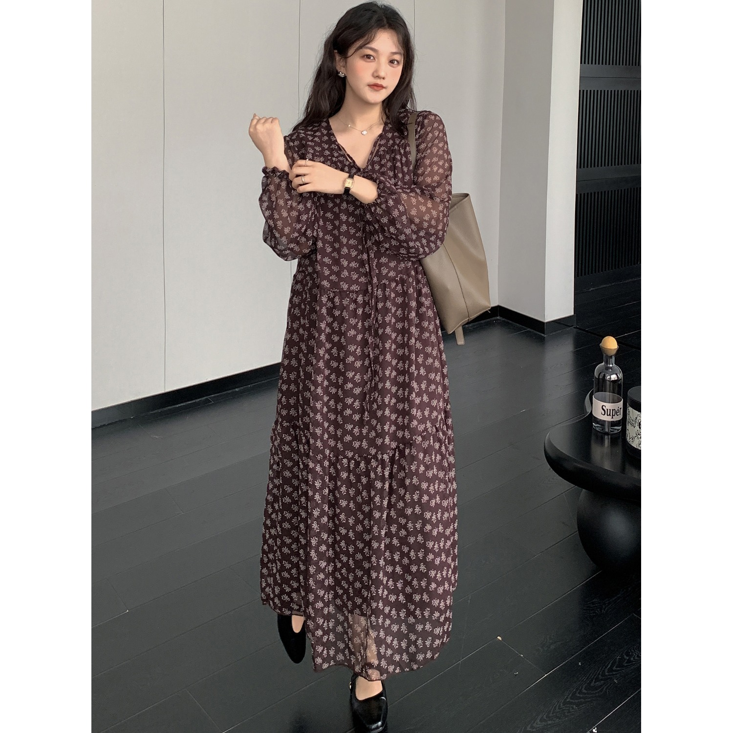 胖mm长裙赫本风小众过膝长裙子 新款 大码 假两件连衣裙女2025秋冬季
