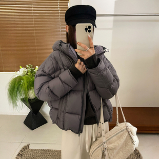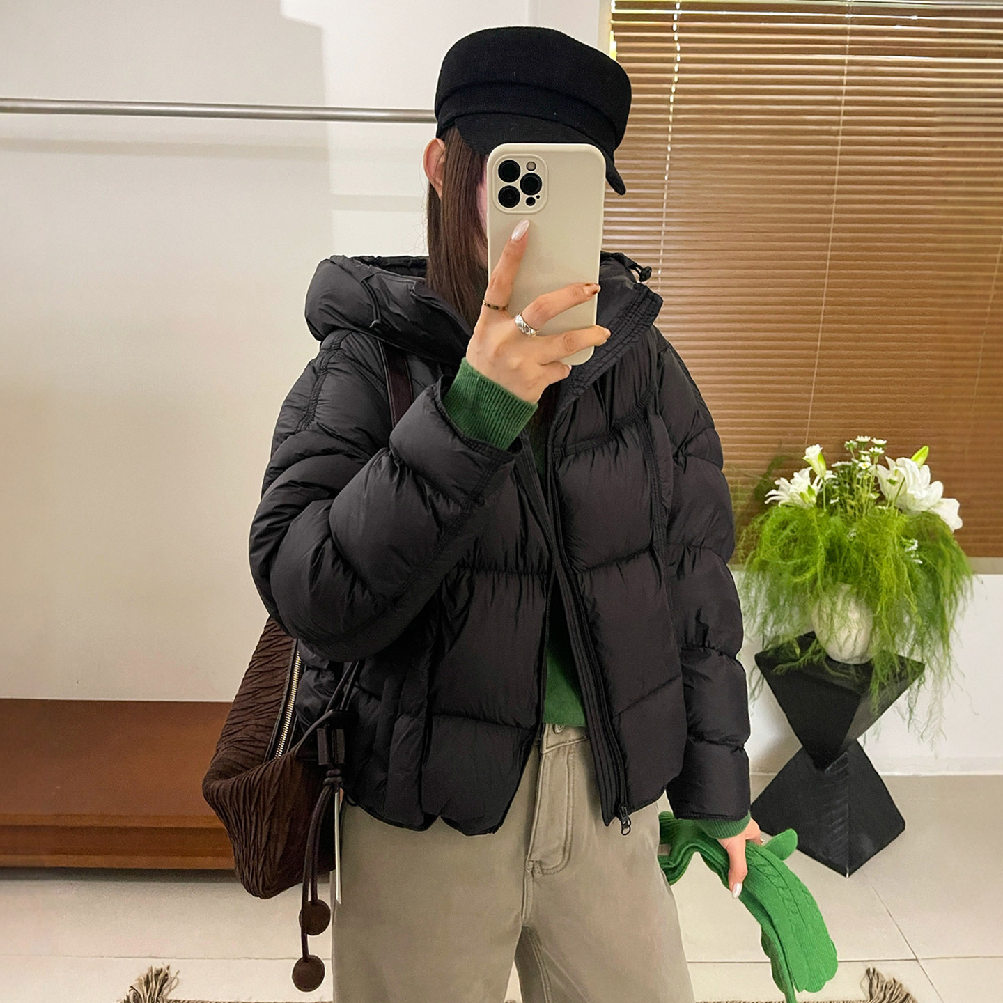 短款 欧货女装 外套潮 新款 克莱因蓝连帽面包羽绒服女欧洲站2025冬装