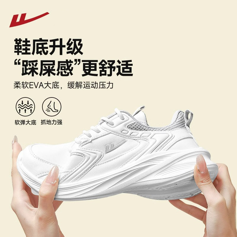 白色运动鞋 子轻便软底跑步鞋 女款 皮面防水女士小白鞋 新款 回力女鞋