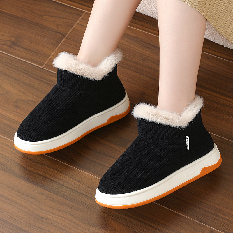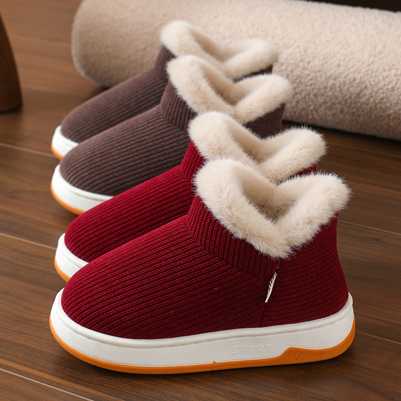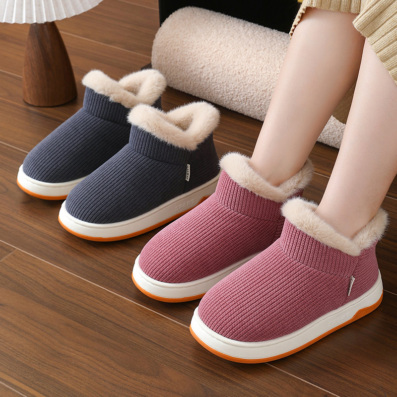 老年鞋 居家用防滑厚底毛毛加绒保暖棉鞋 牛筋底 女包跟冬季 棉拖鞋
