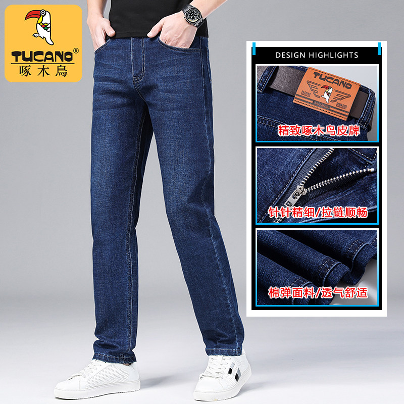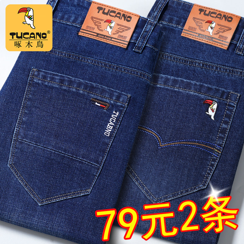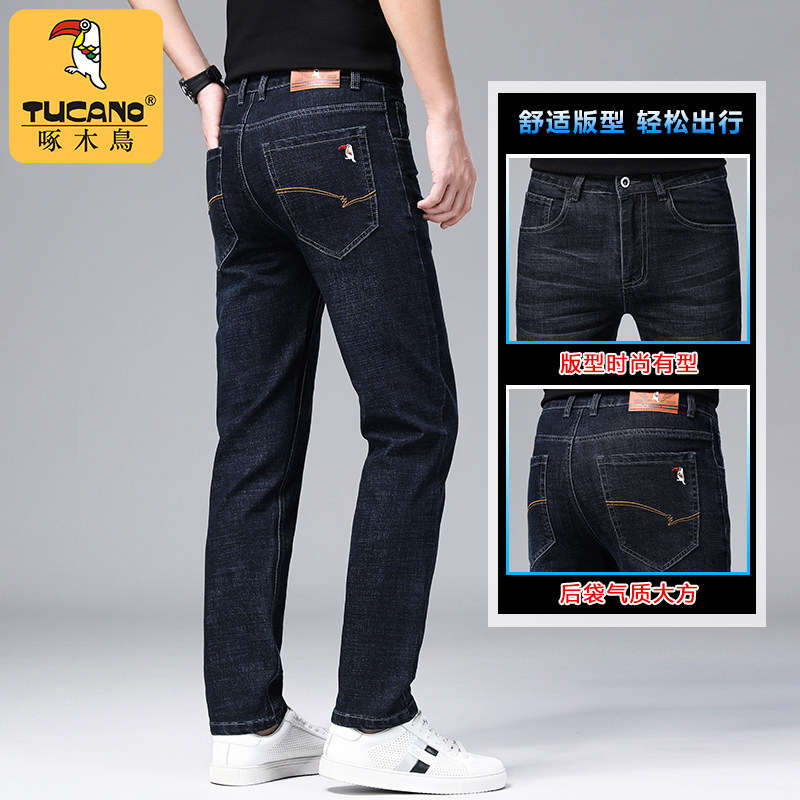 加绒加厚宽松直筒休闲高腰弹力百搭长裤 2025冬季 男款 啄木鸟牛仔裤