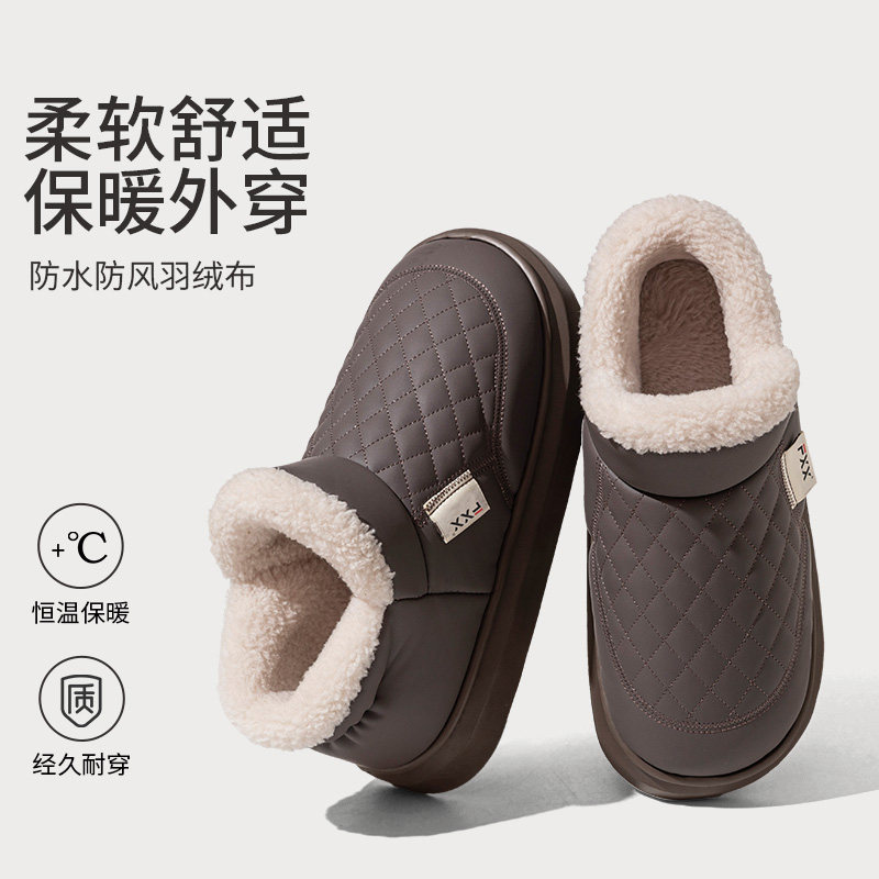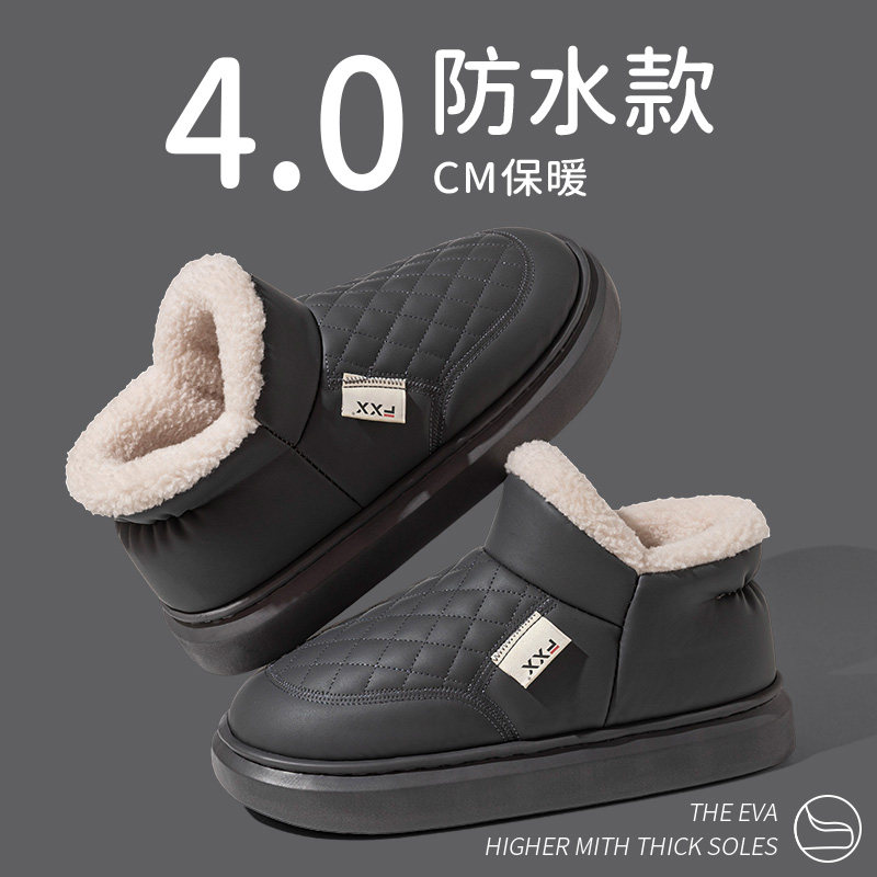 男士 女款 冬季 厚底保暖加绒毛棉鞋 雪地靴 2025新款 防水包跟棉拖鞋