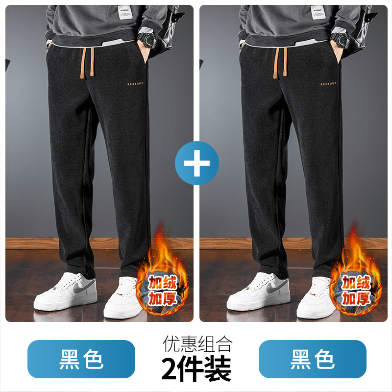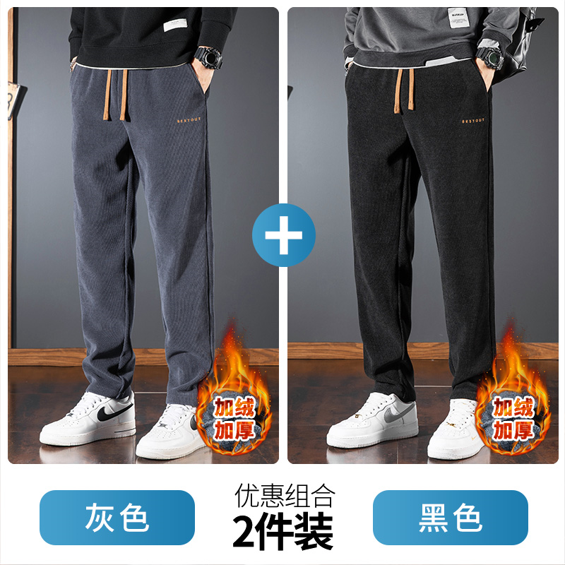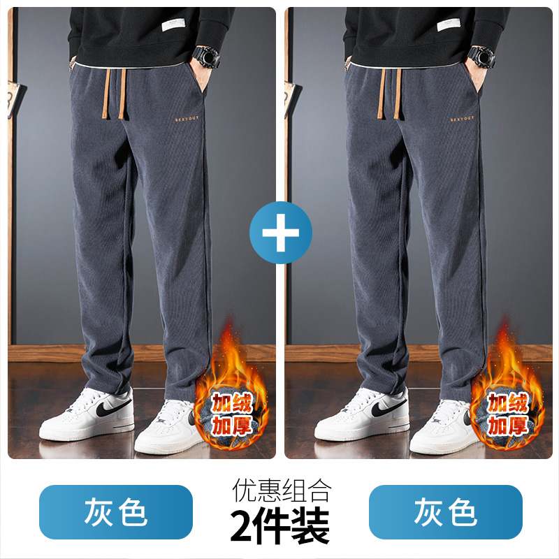 男士 长裤 秋冬季 加绒保暖灯芯绒卫裤 子 直筒宽松运动裤 雪尼尔休闲裤