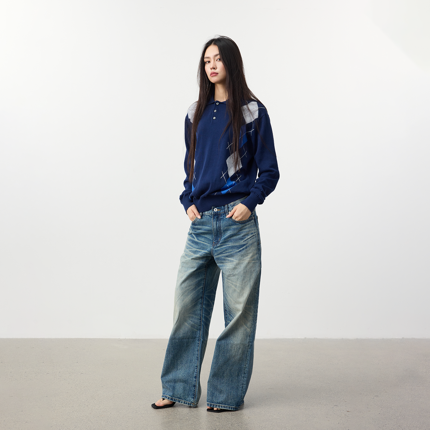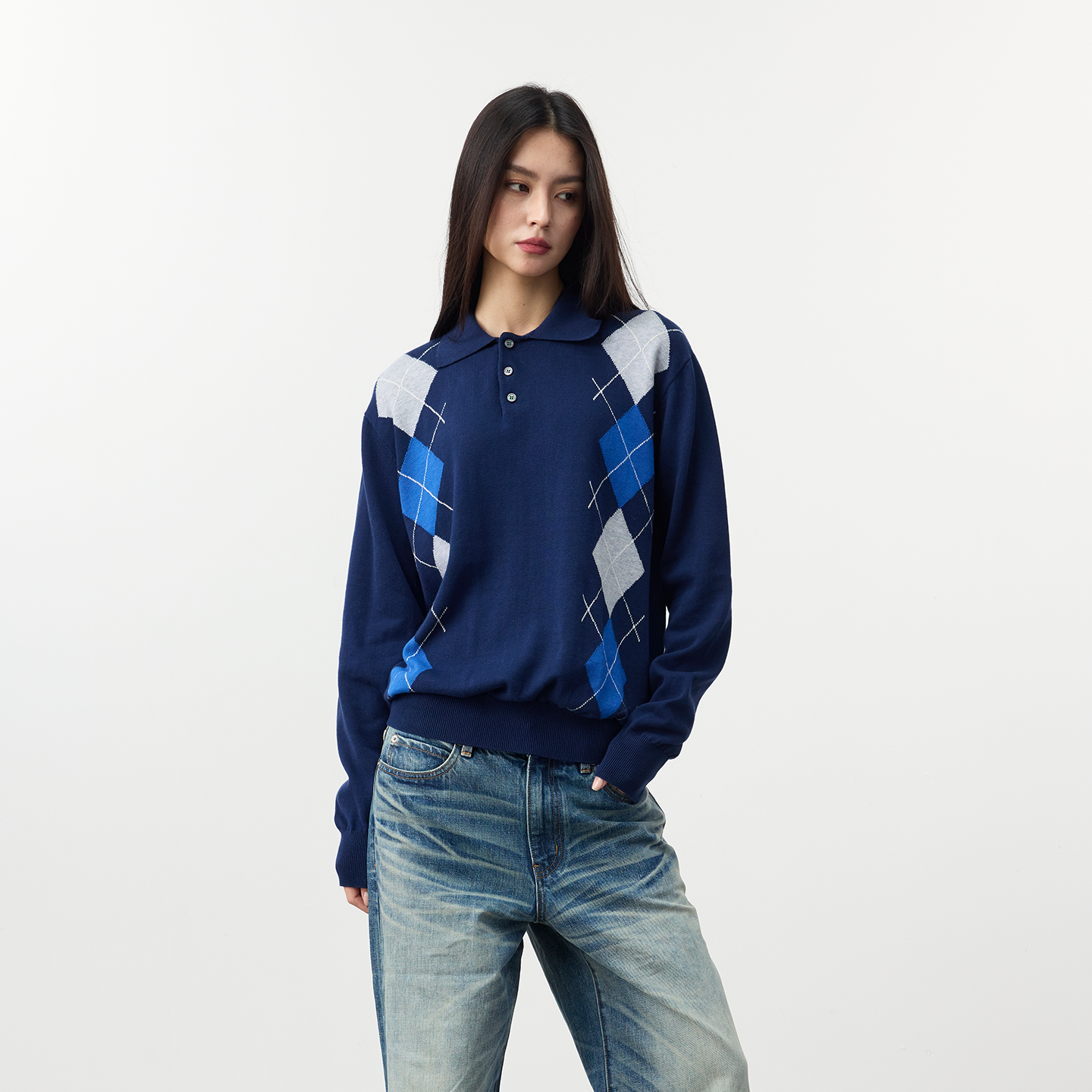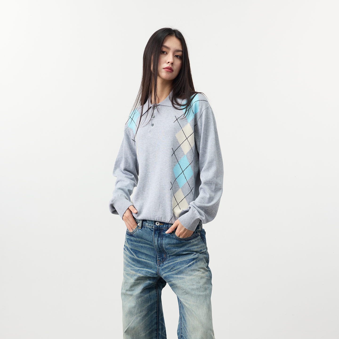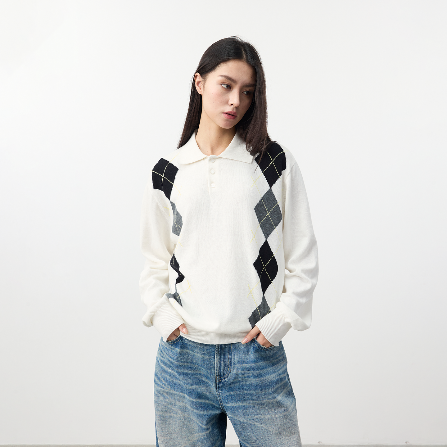 25FW提花撞色菱格针织Polo软糯毛衣 life Set for