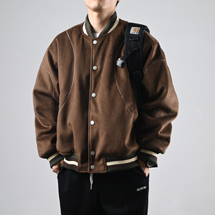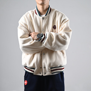AWRB美式 复古cleanfit翻领刺绣棉服男宽松休闲百搭简约外套