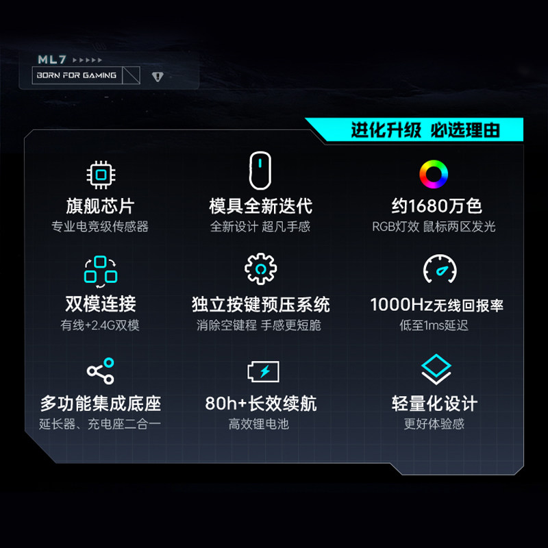 鼠标电竞游戏无线蓝牙三模轻量化Ultra Pro 3395 MCHOSE迈从A7