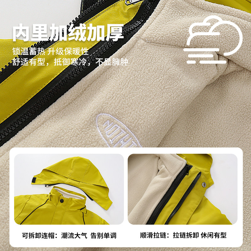 男女童冲锋衣内胆一体绒内搭 中大童加厚保暖外套开衫 校服神器