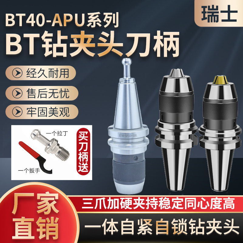 钻夹头刀柄APU16数控CN加工中心刀柄一体式 自紧40钻夹头BT50刀柄