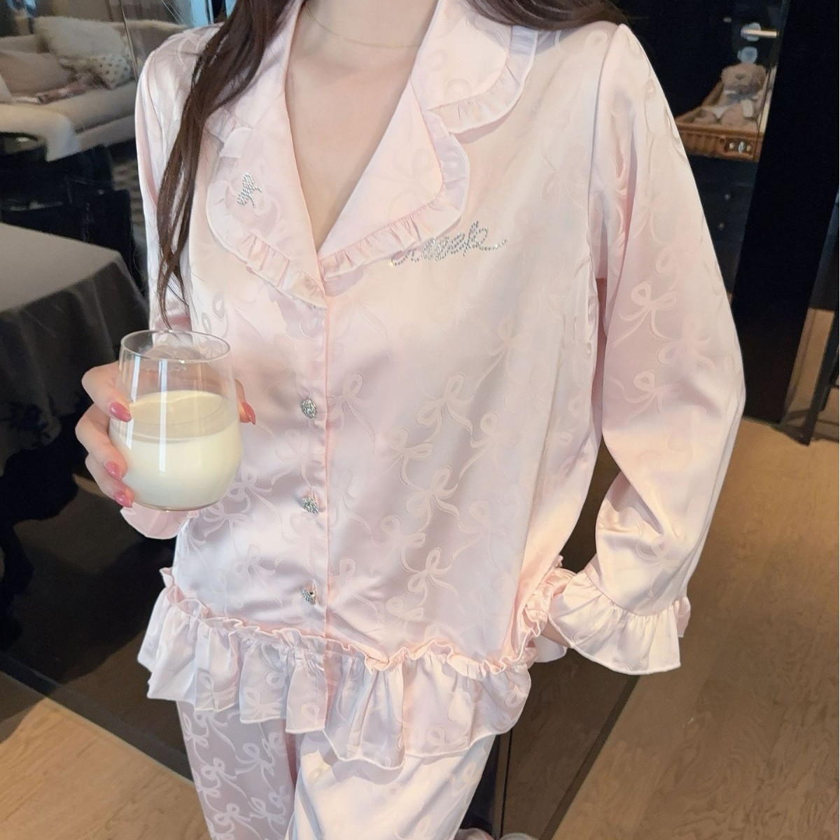 珊瑚绒女士水草绿显白法兰绒蝴蝶结家居服套装 2025新款 睡衣秋冬季