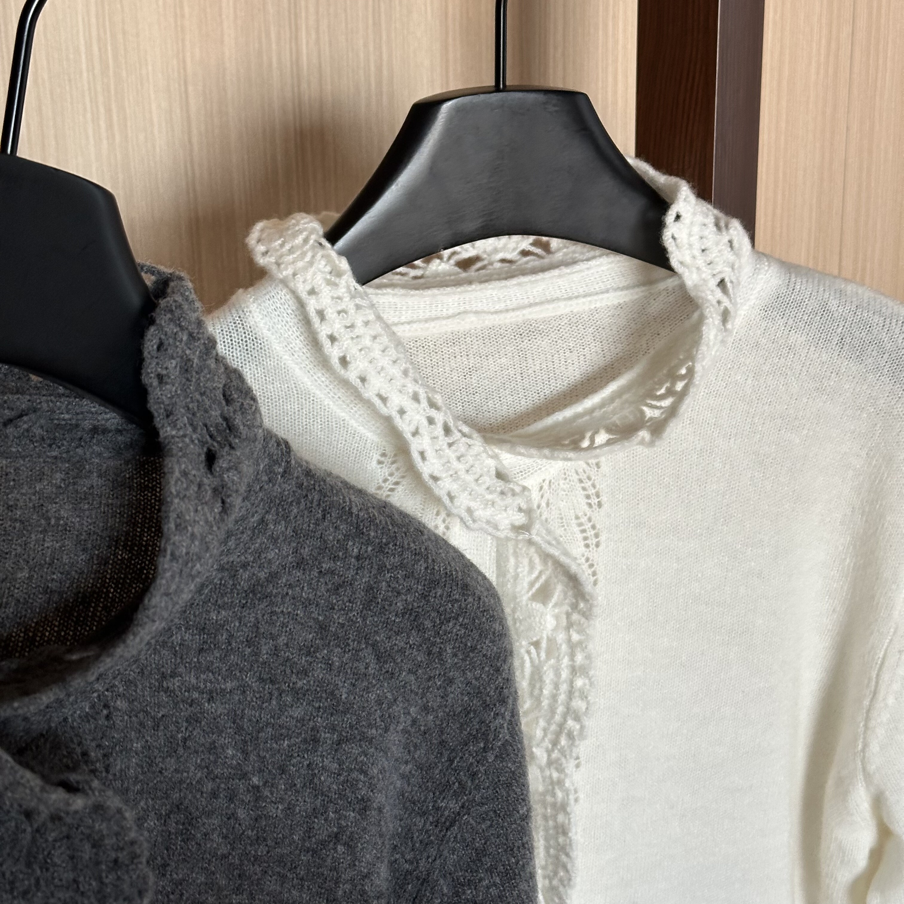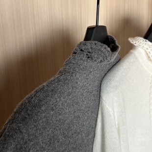 WMM重工提花羊毛混纺立领蕾丝花边针织开衫 女秋冬保暖百搭气质韩