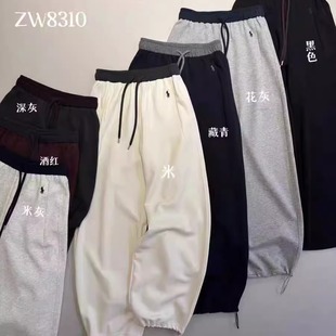 ZW左维zuowooon卫裤 8563 女2025秋松紧束脚抽绳小马刺绣直筒阔腿裤