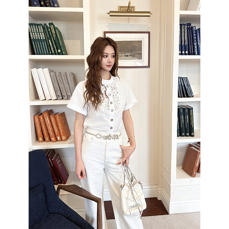 衬衫 埃斯特宫廷风立体花朵立领镂空短袖 2025新款 Forevercan女装
