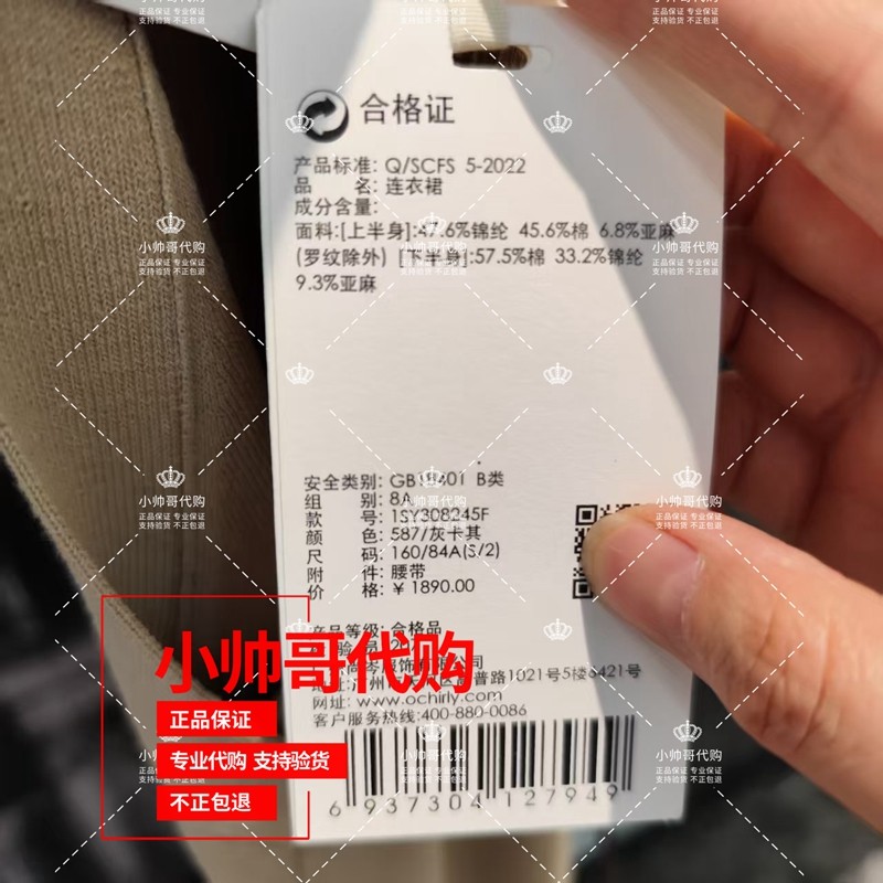 专柜正品 2025年秋季 纯色腰带针织连衣裙 8A欧时力 现货1SY308245F