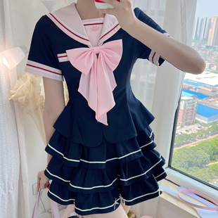 妙也可原创水手服jk蓬蓬裙百褶裙显瘦学生校服风高中校服裙