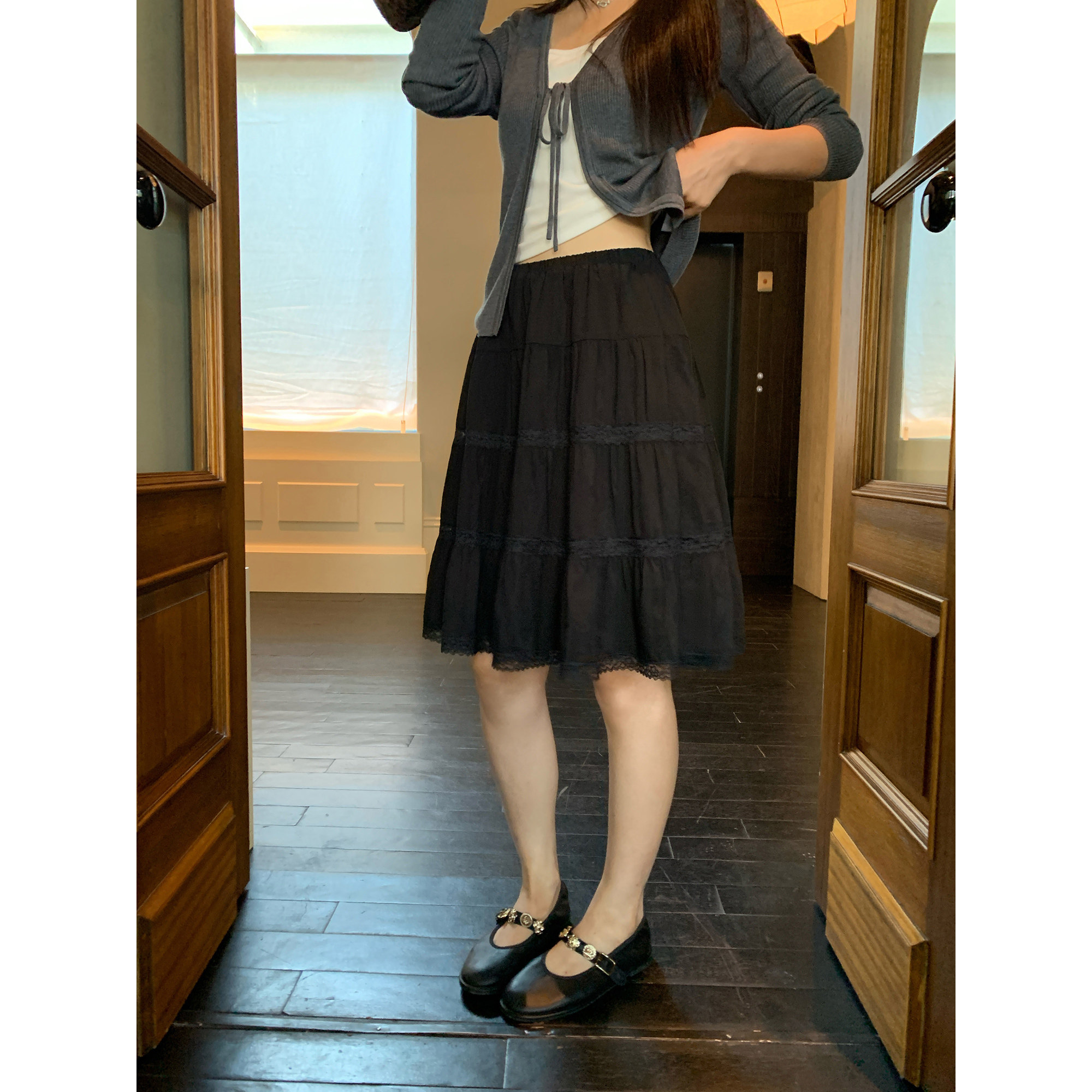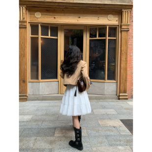 pusumede芭蕾少女 白色高腰半身裙女设计感a字减龄甜美蛋糕裙 法式