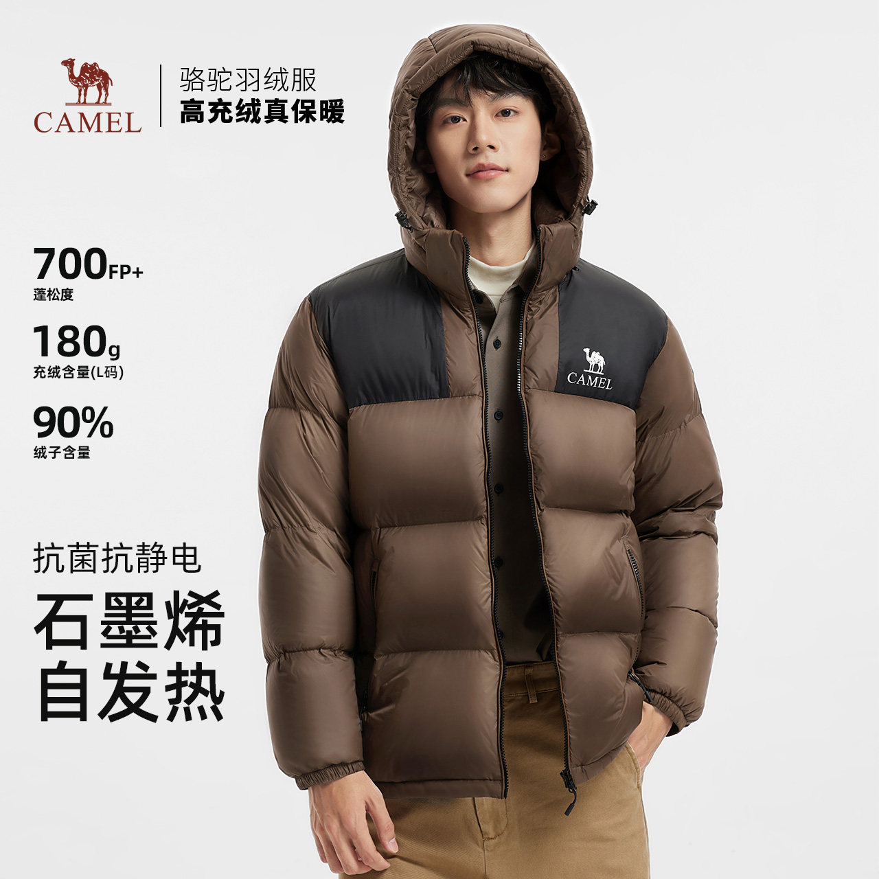 情侣加厚连帽防水面包羽绒外套女 运动三防羽绒服男冬季 骆驼火炉