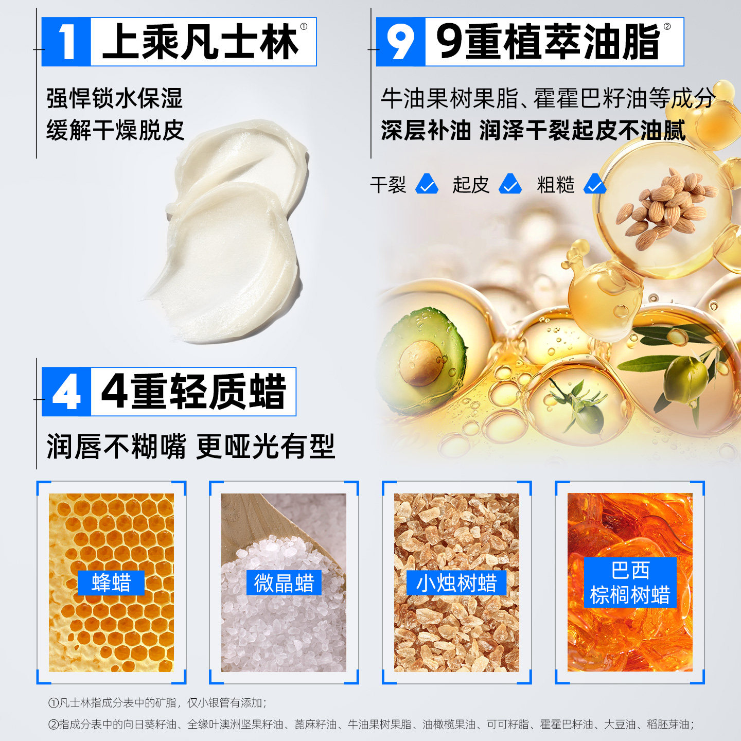 女专用B1 滋润补水防干裂去死皮淡化唇纹男士 2支 凡士林润唇膏保湿