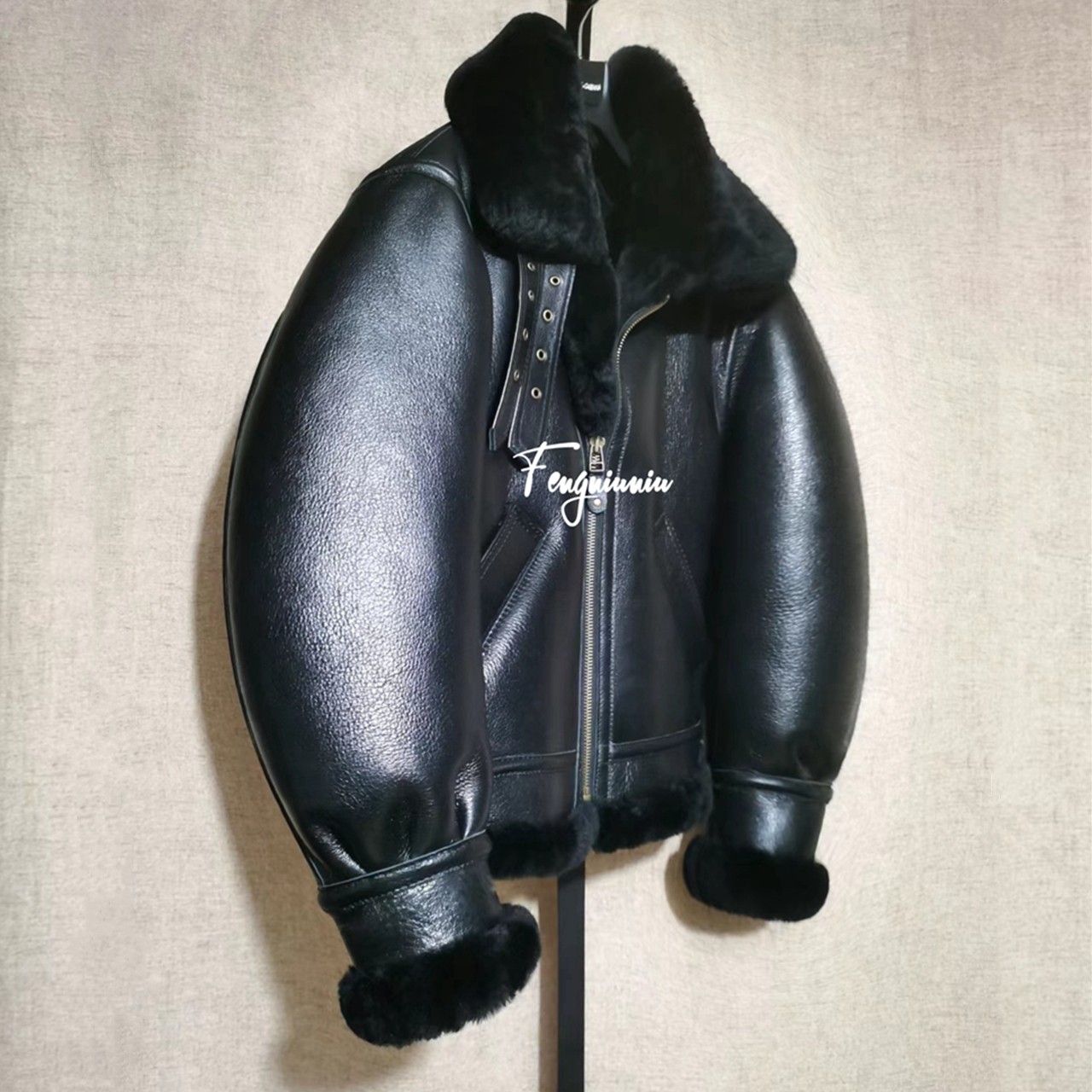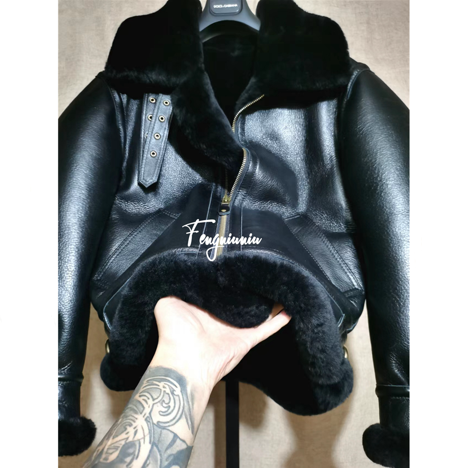 美国B3皮毛一体原产均裂纹欧美复古黑金刚欧美爆厚夹克外套男女款
