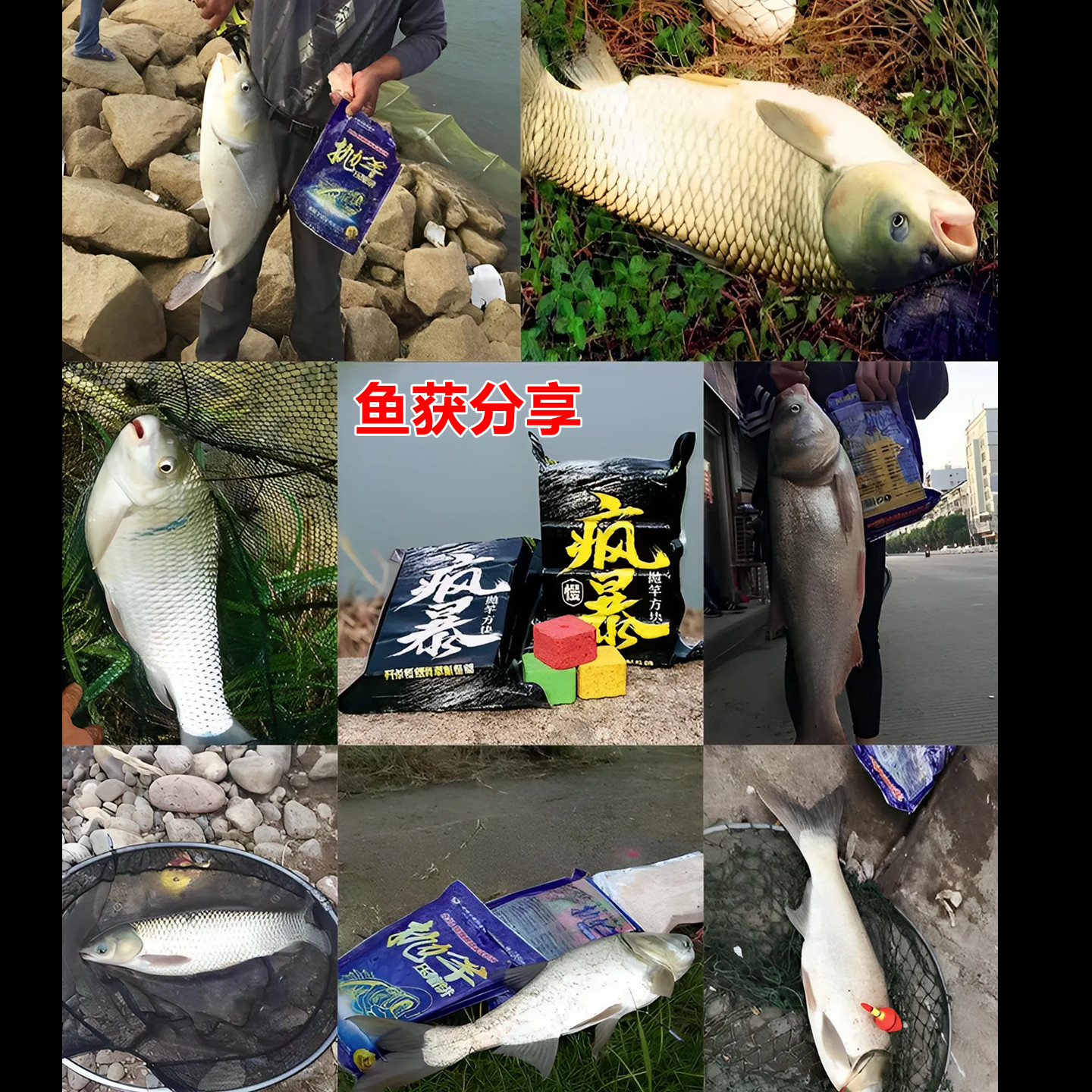 黑鸭子风暴方块饵料野钓鲢鳙野战江湖酸臭味疯暴慢翻板钩鱼饵猛料