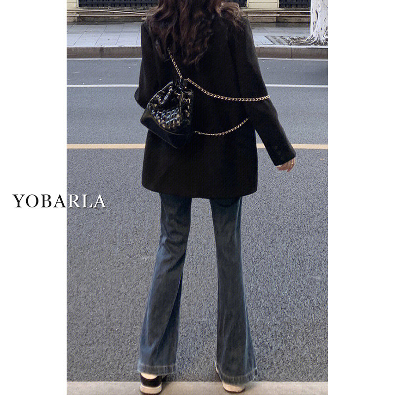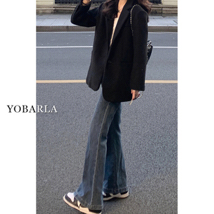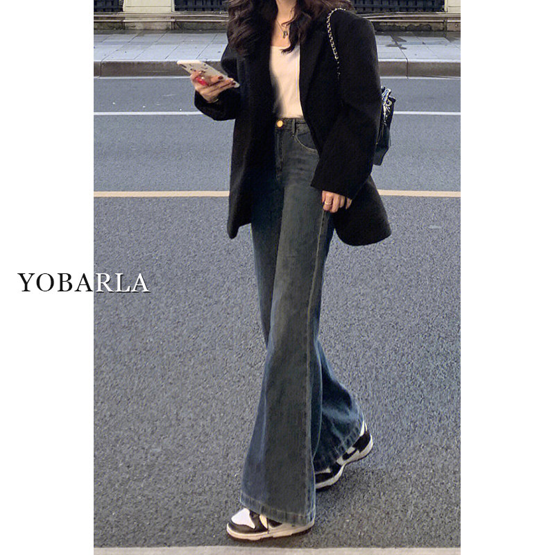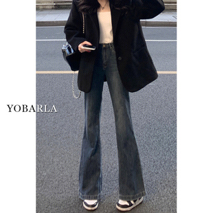 胖mm高腰显瘦喇叭马蹄裤 加绒加厚大码 女冬季 复古不贴腿微喇牛仔裤