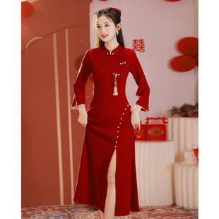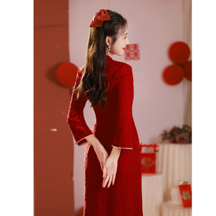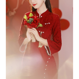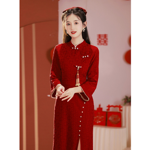 订婚礼服回门服新娘冬季 改良年轻款 中式 旗袍敬酒服结婚酒红色长袖