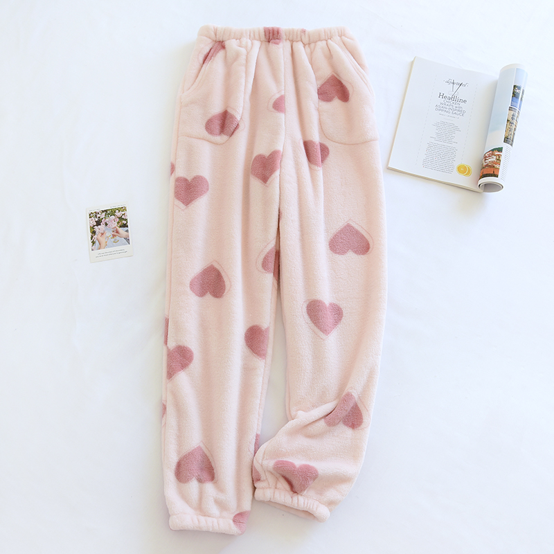 女秋冬季 暖暖裤 保暖大码 珊瑚绒可爱家居裤 宽松长裤 加厚法兰绒睡裤