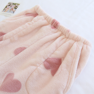 可外穿厚 保暖束脚珊瑚绒家居裤 2025秋冬法兰绒爱心睡裤 女收口长裤