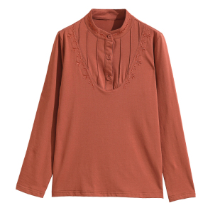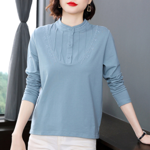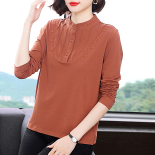 t恤女 中老年妈妈上衣打底衫 2026春秋装 秋衣外穿衬衫 新款 纯棉长袖