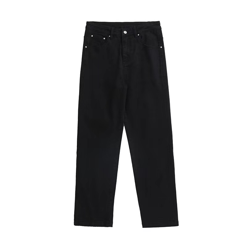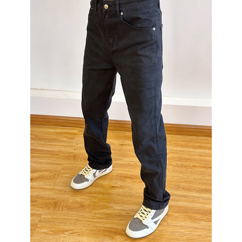 子 男vibe风百搭宽松休闲长裤 BurnBro美式 高街弹力黑色直筒牛仔裤