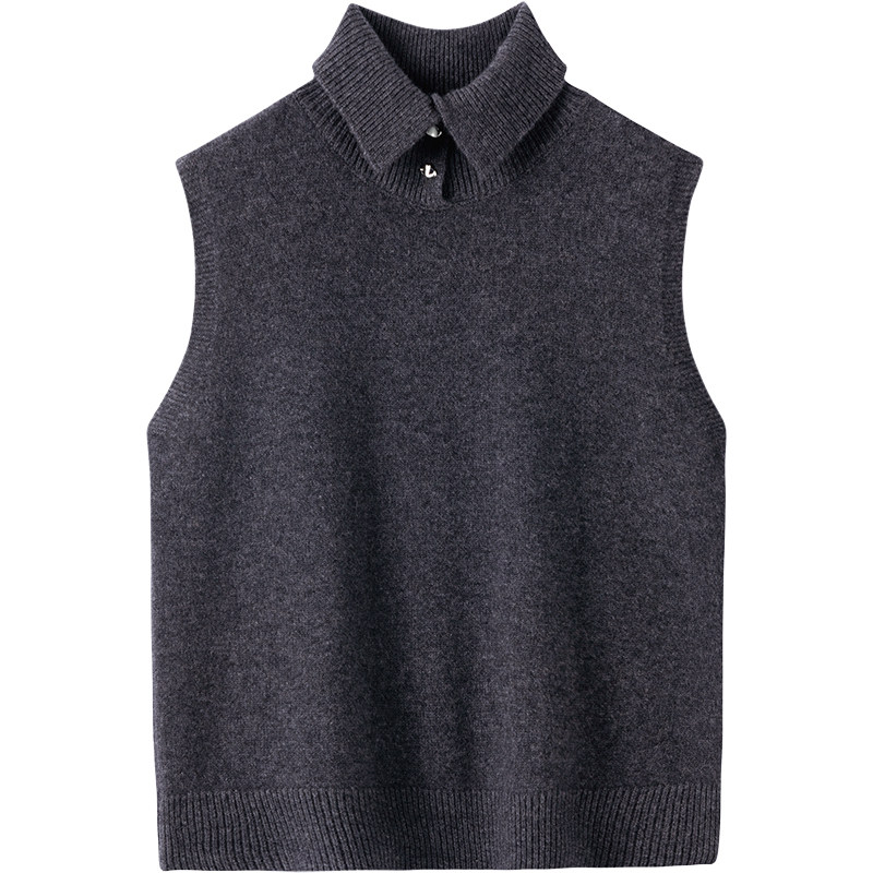 圆领100%纯山羊绒衫 灰色宽松打底上衣 女毛衣秋冬假两件拼色针织衫