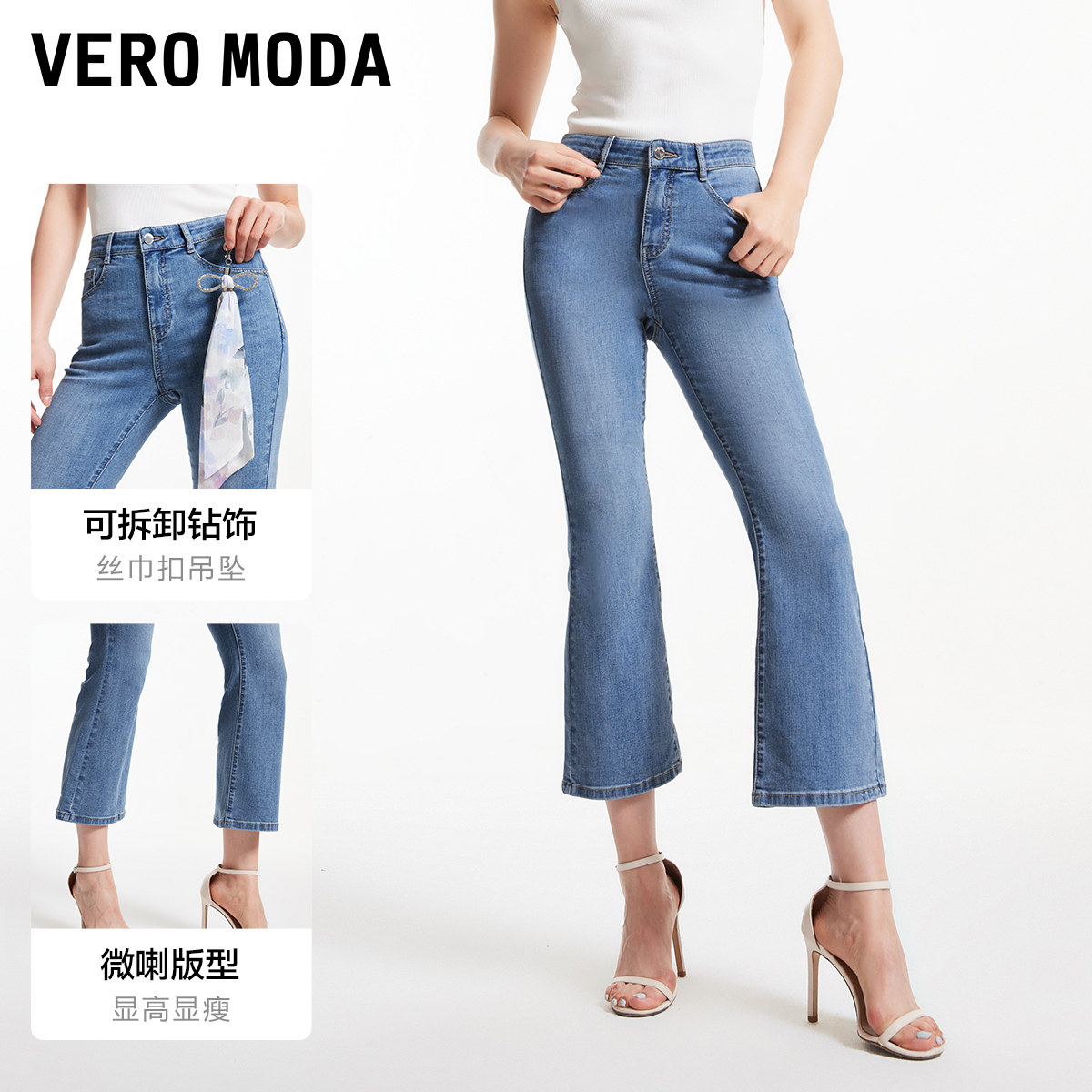 气质微喇叭裤 Vero 显瘦棉质七分裤 女2024夏季 Moda牛仔裤