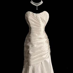2024秋冬新款 复古抹胸显瘦新娘结婚高级感塔夫绸缎面轻婚纱礼服女