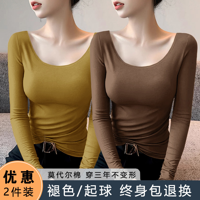 T恤 胖mm遮肚子修身 双面德绒打底衫 女可外穿内搭秋冬保暖上衣大码