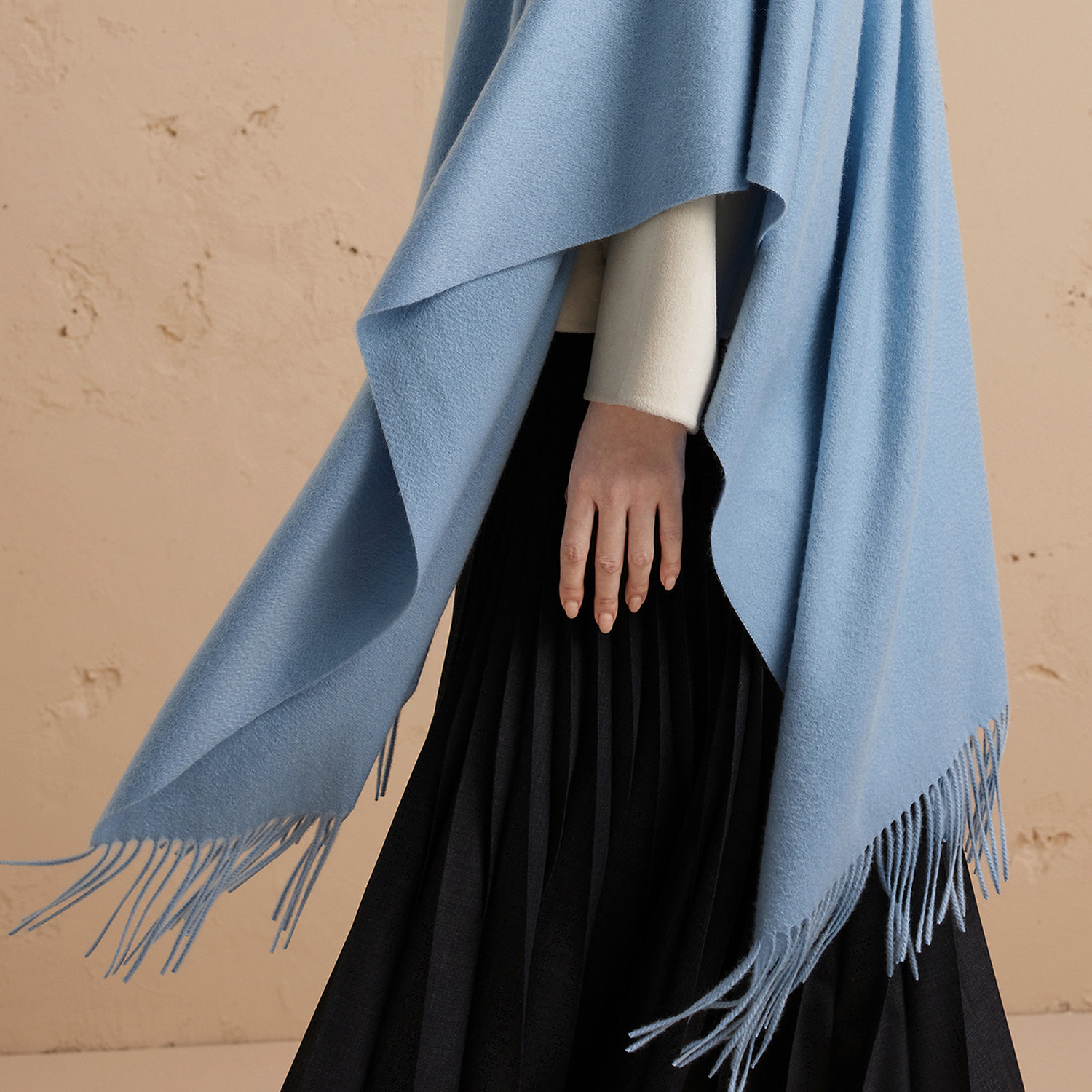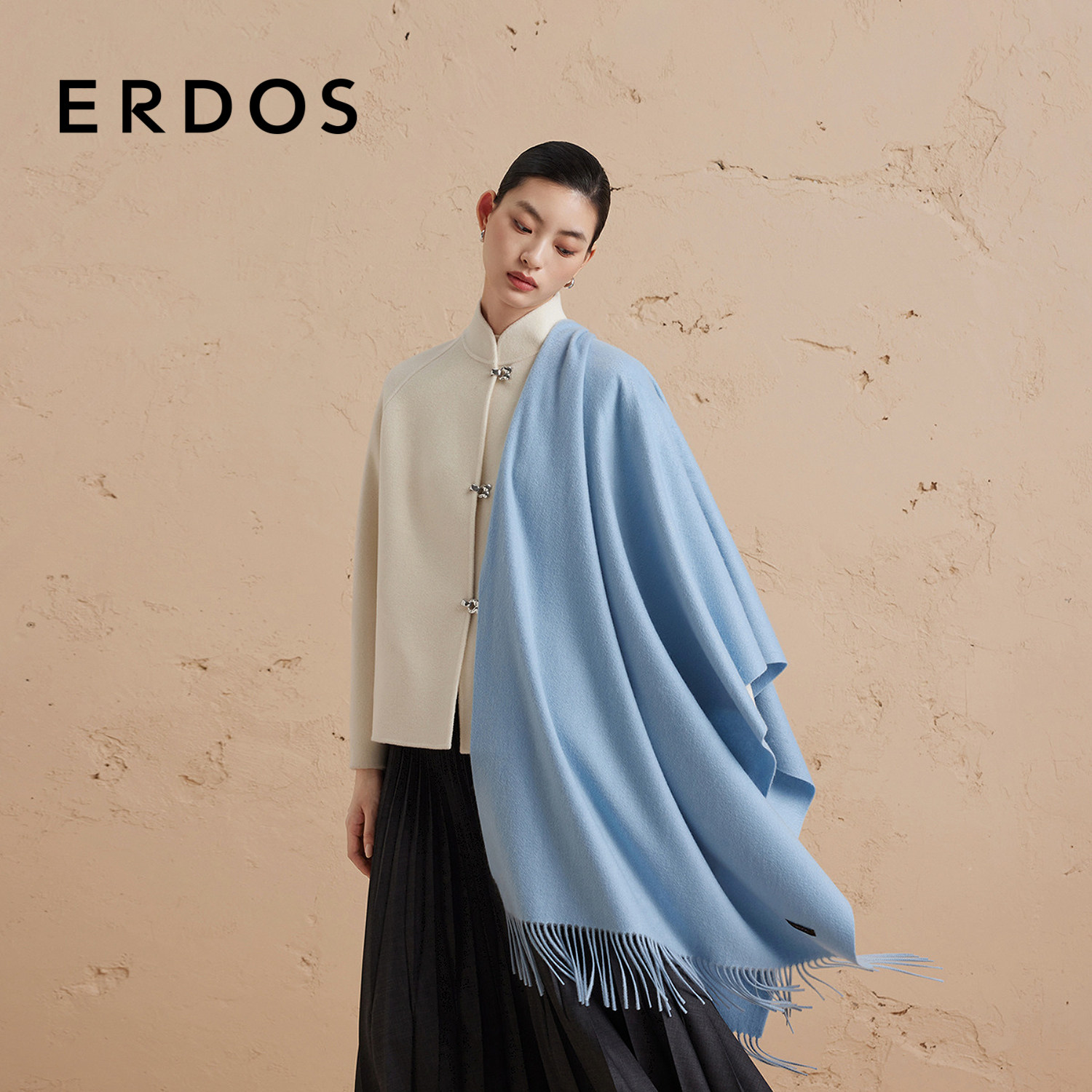 纯羊绒单层水纹针织披肩秋冬保暖围巾 ERDOS 男女同款