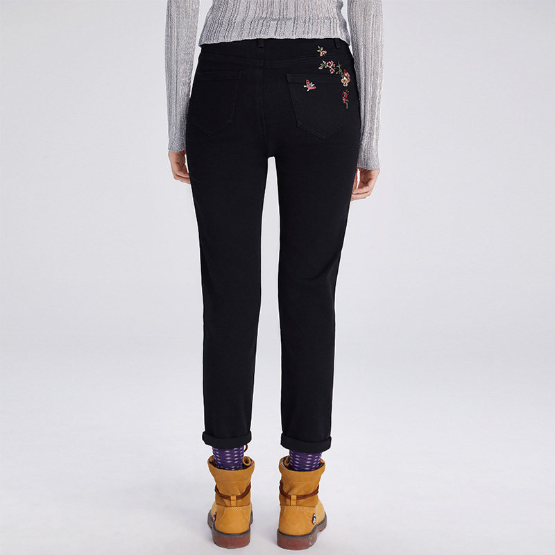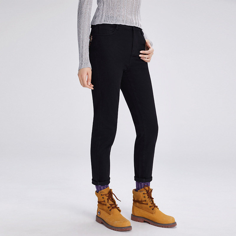 黑色水洗小脚休闲九分裤 渔牌女装 秋季 女士2024新款 FGGC6009 牛仔裤