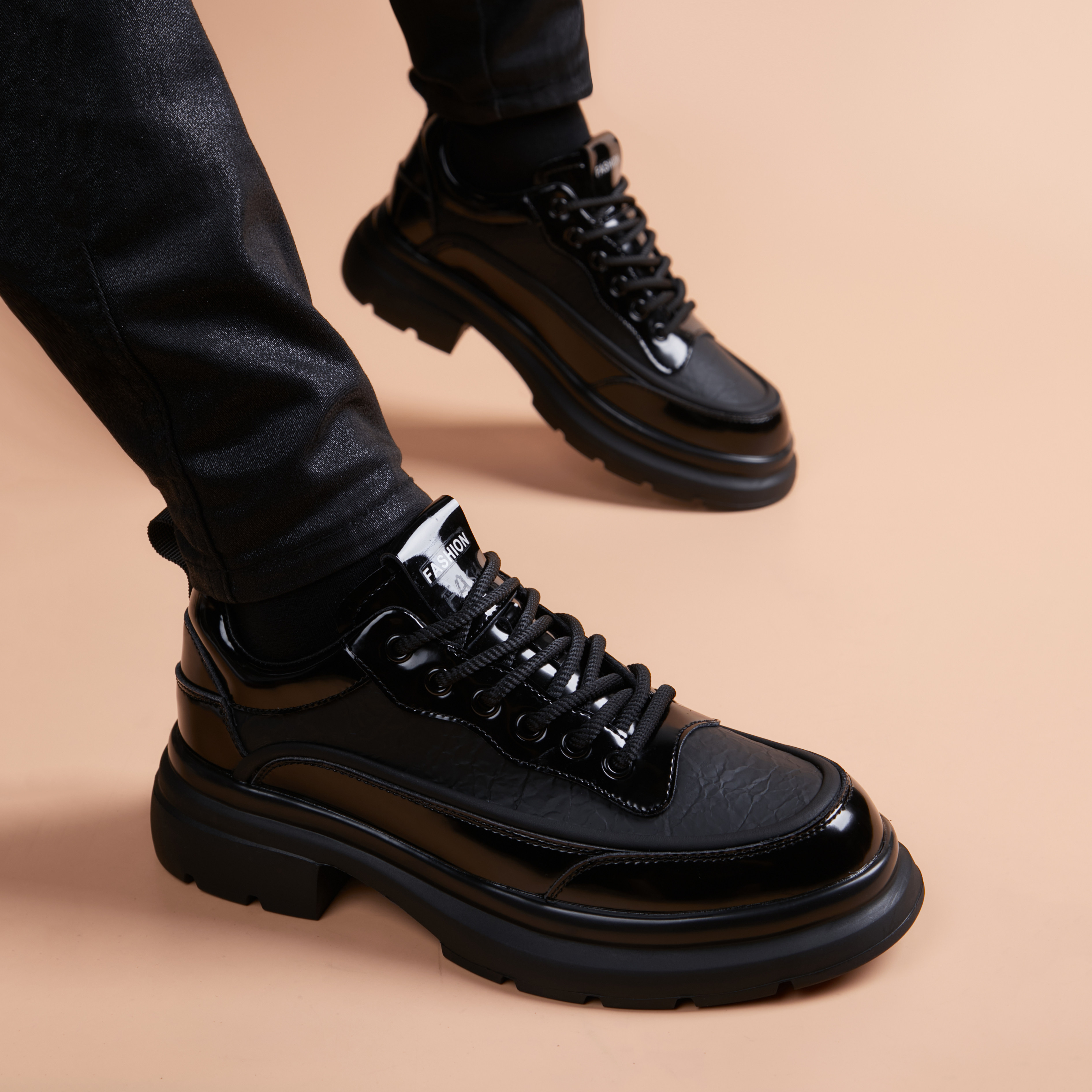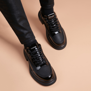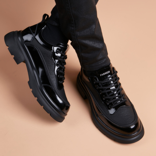 男款 加绒休闲皮鞋 2025新款 子商务男士 黑色软底新郎结婚鞋 回力皮鞋