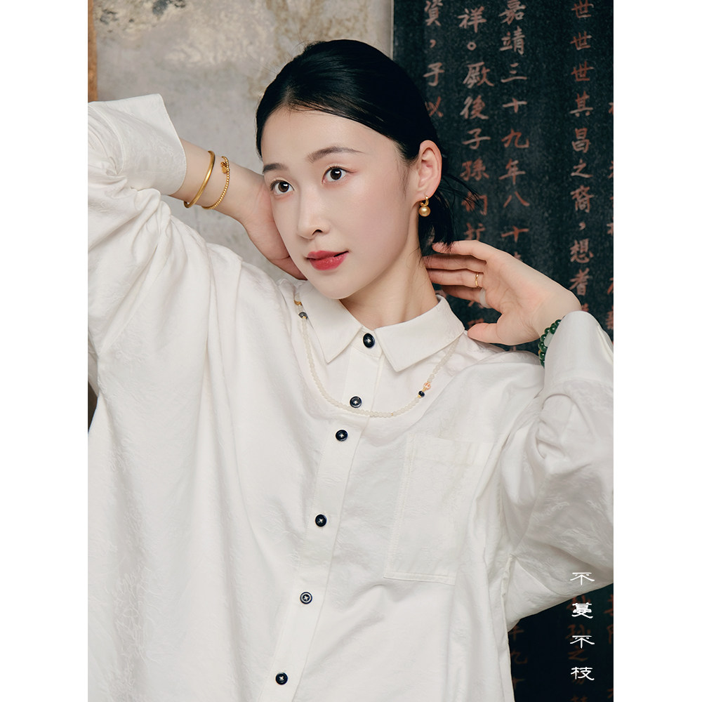 翻领长袖 不蔓不枝 衬衣开衫 新中式 暗纹提花宽松百搭通勤秋 寒露