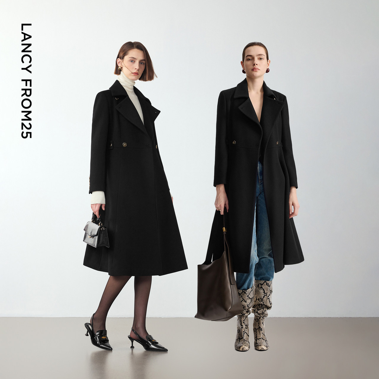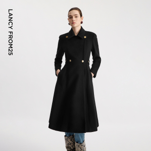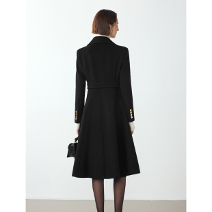 赫本风羊毛大衣翻领收腰毛呢 设计感法式 朗姿优雅黑色冬季 新款