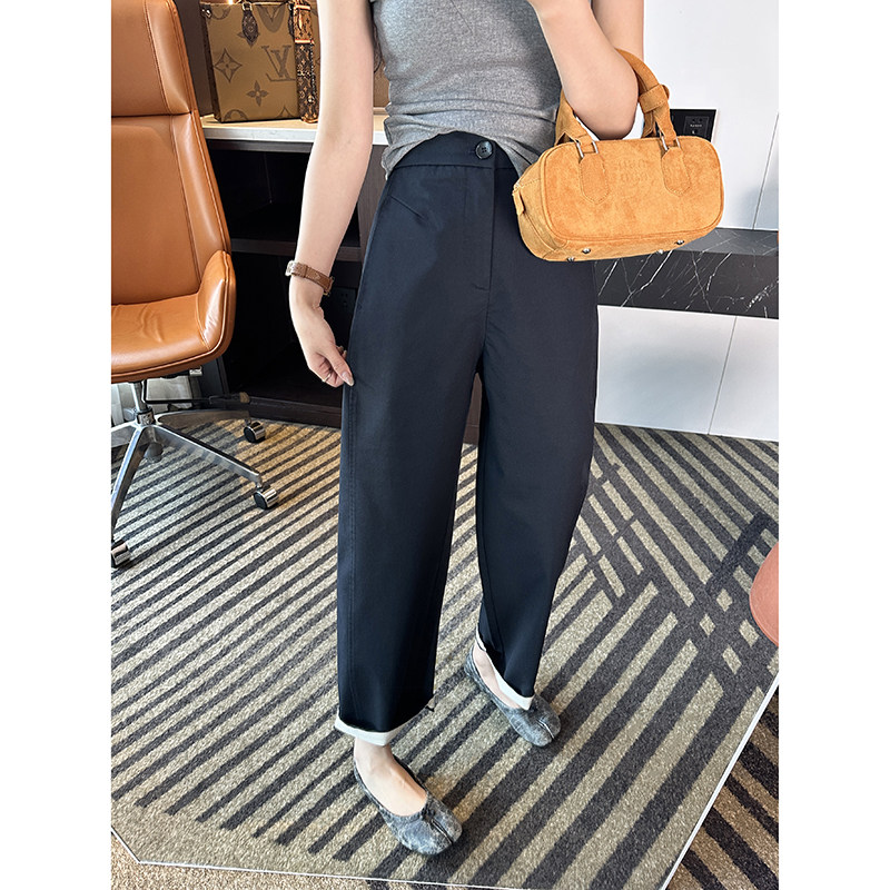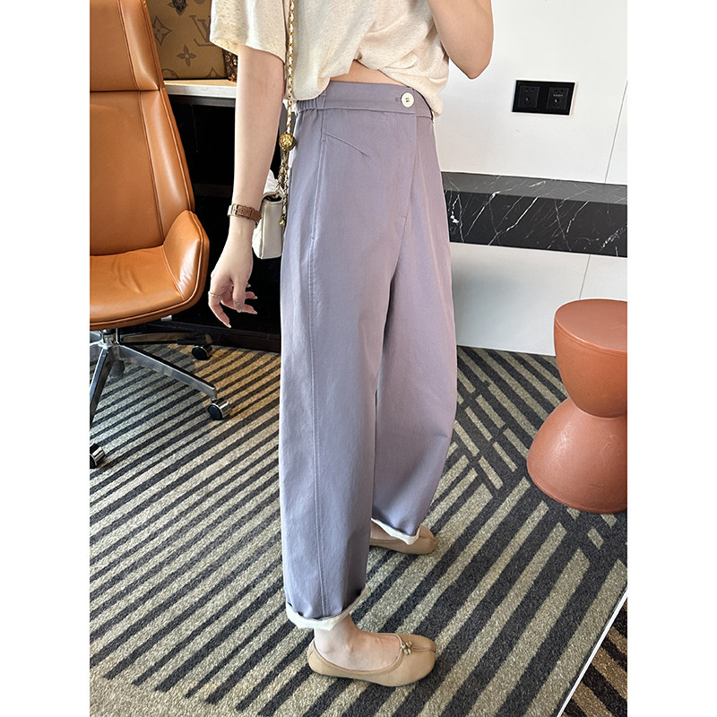 子 女春夏高腰九分阔腿裤 巨显腿直 莱赛尔弧形宽松九分休闲裤